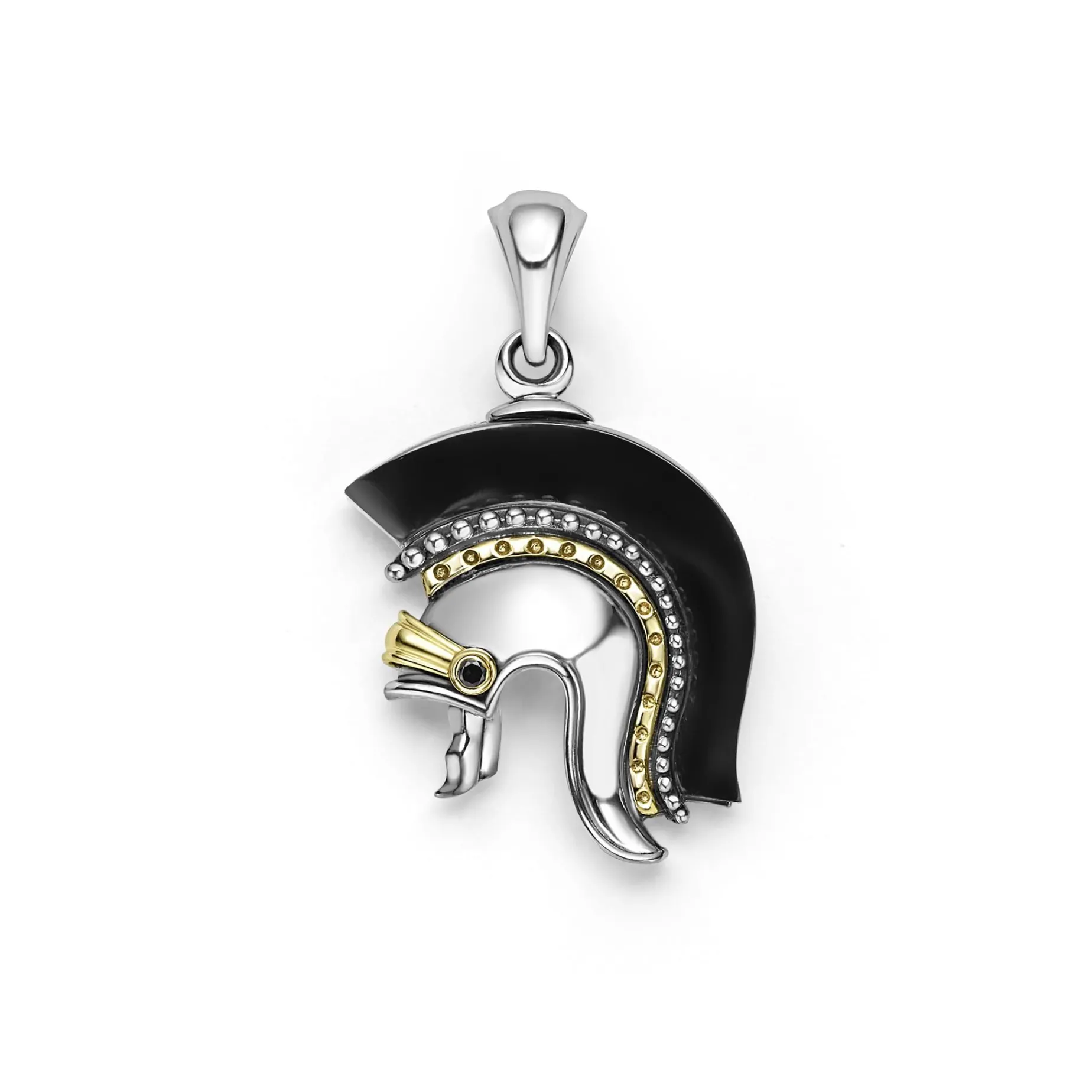 Rich Black Agate Gemstone, Sterling Silver And Smooth 18K Gold Form This Spartan Helmet Amulet.