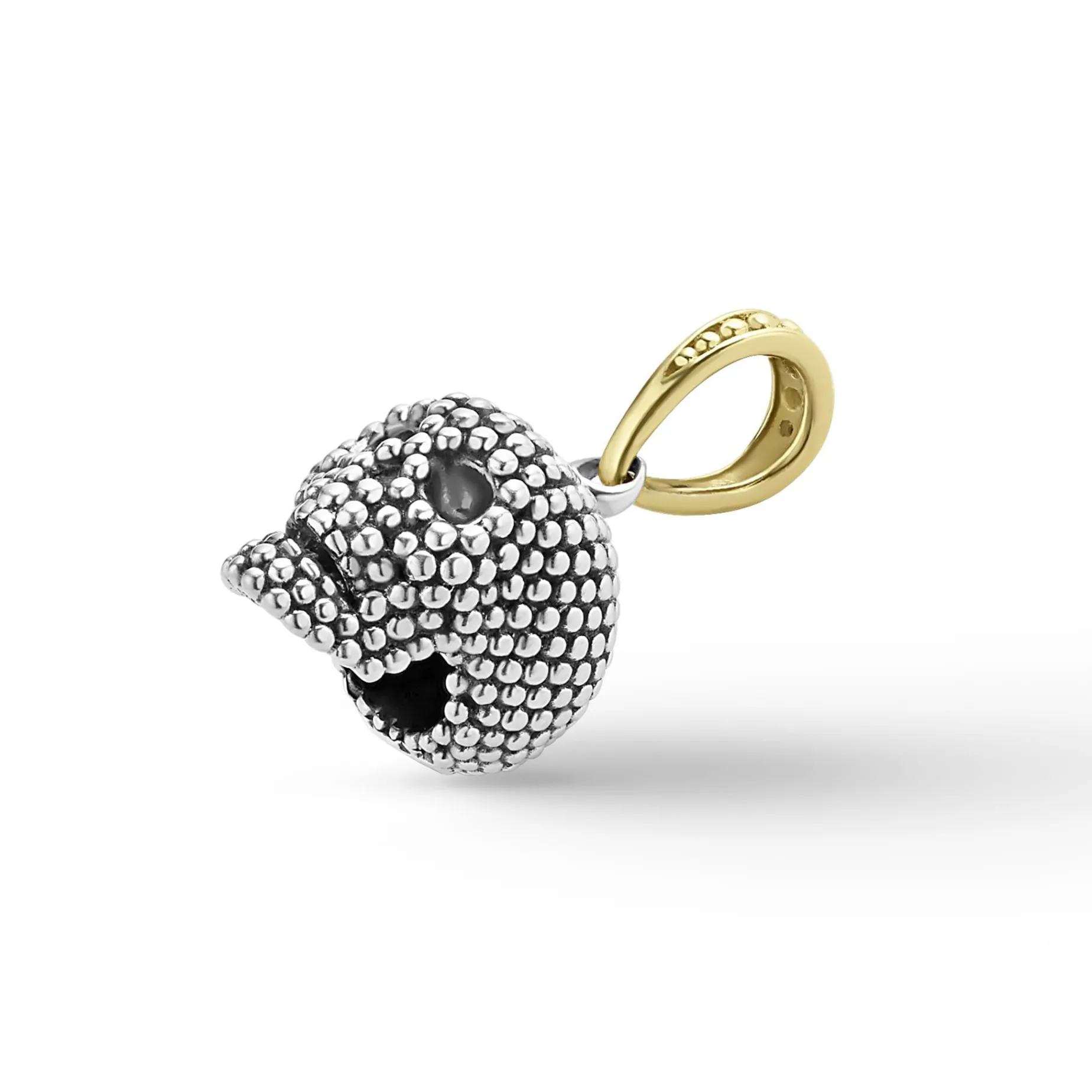 Artfully Crafted Skull Amulet Made Of Sterling Silver Caviar Beading Accented By An 18K Gold Bale.
