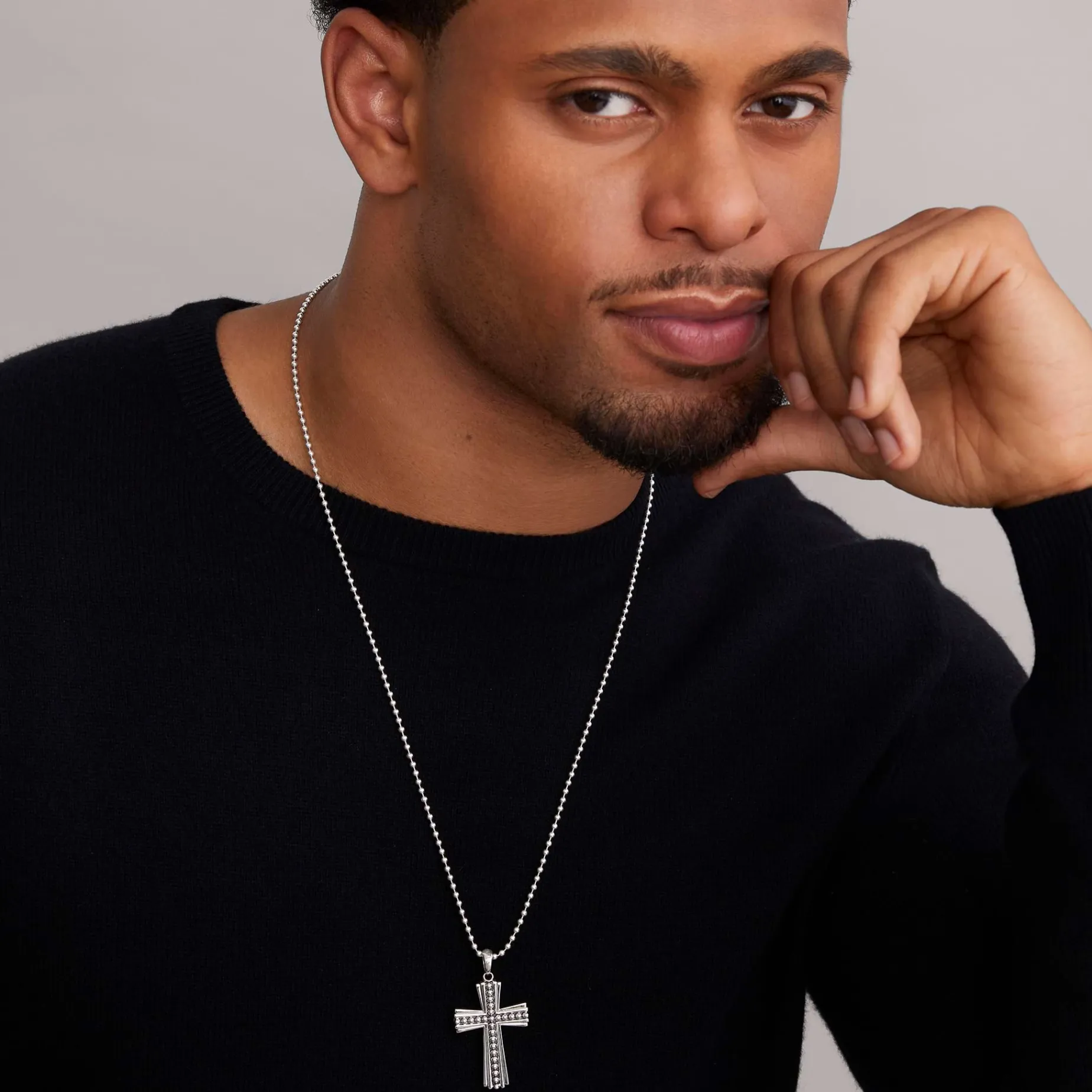 Signature Caviar Beads Accentuated By Highly Polished Sterling Silver Form This Cross Amulet.