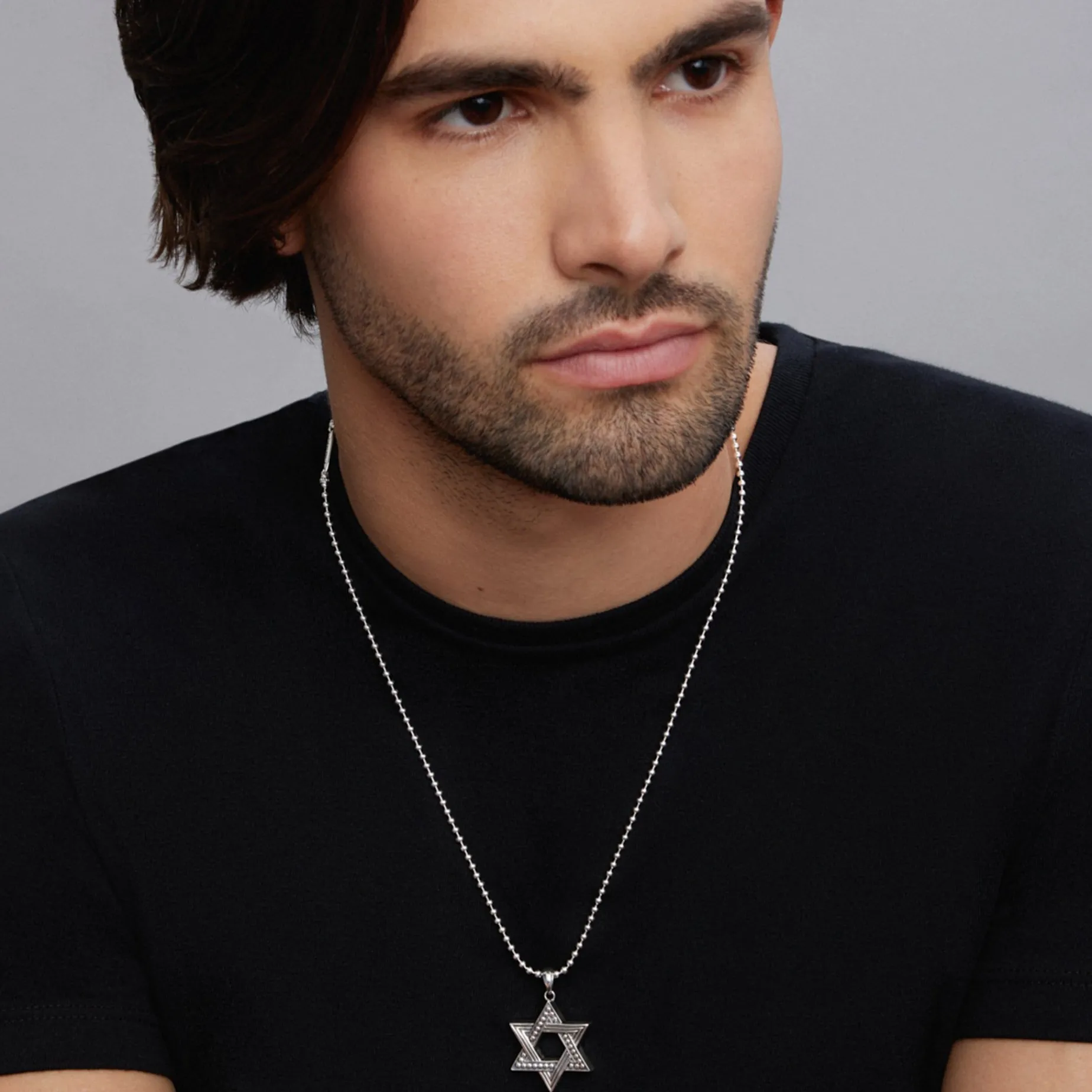 Sterling Silver In A Star Motif Forms This Star Of David Amulet. Finished On A Sterling Silver Ball Chain Necklace.