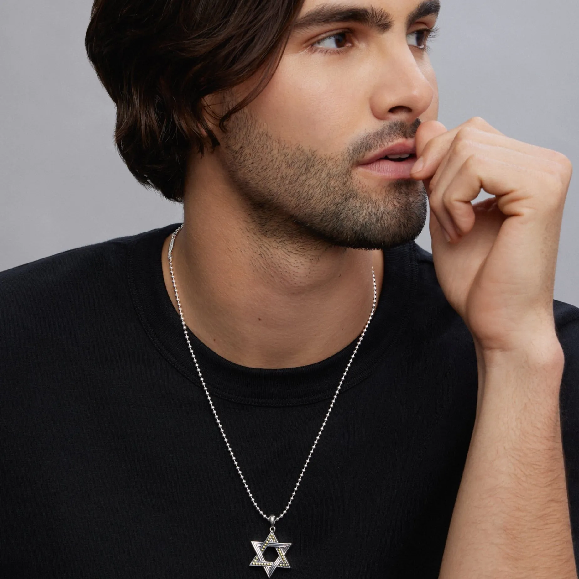 18K Gold And Sterling Silver In A Star Motif Forms This Star Of David Amulet. Wear It Proudly As A Symbol Of Faith, Style, And Tradition.