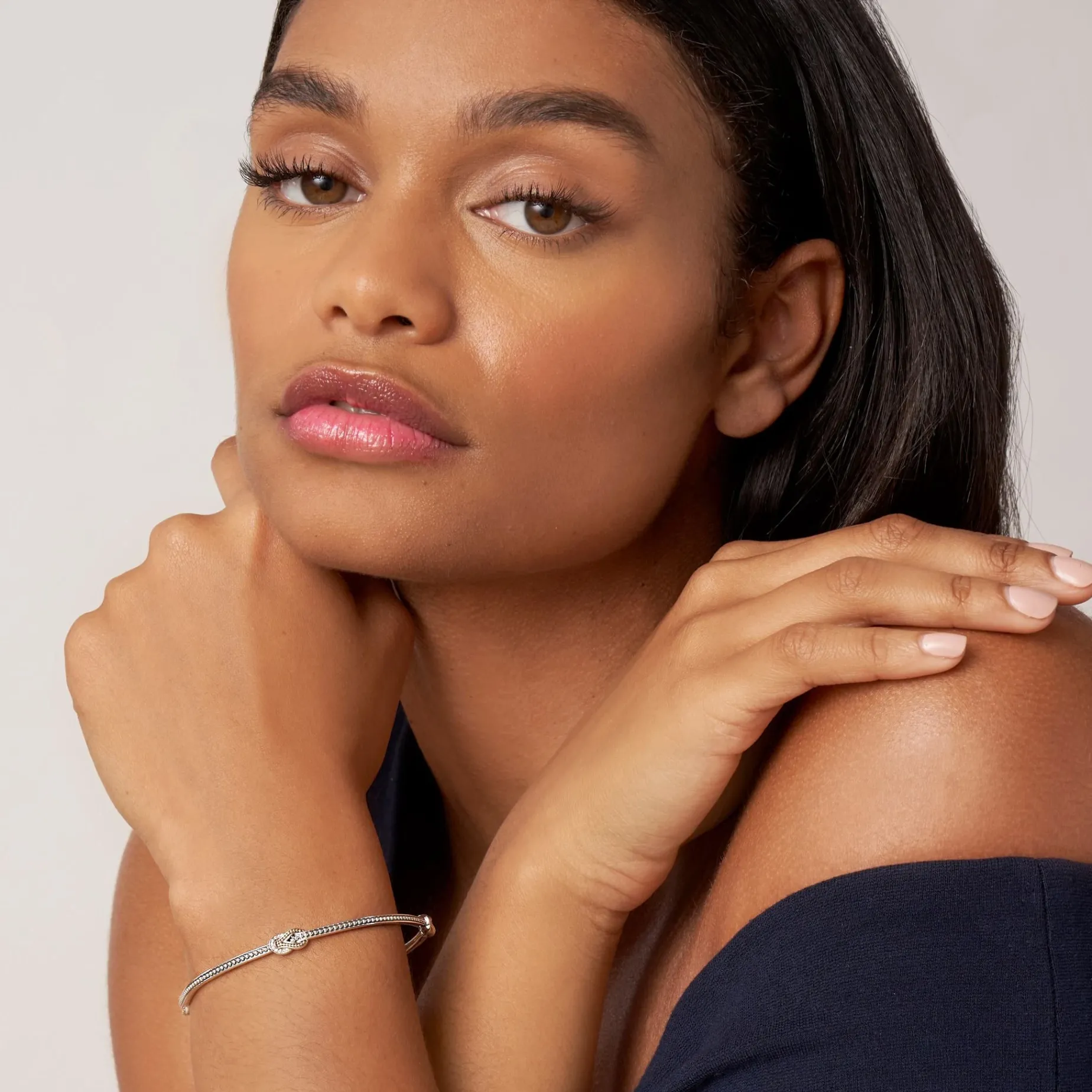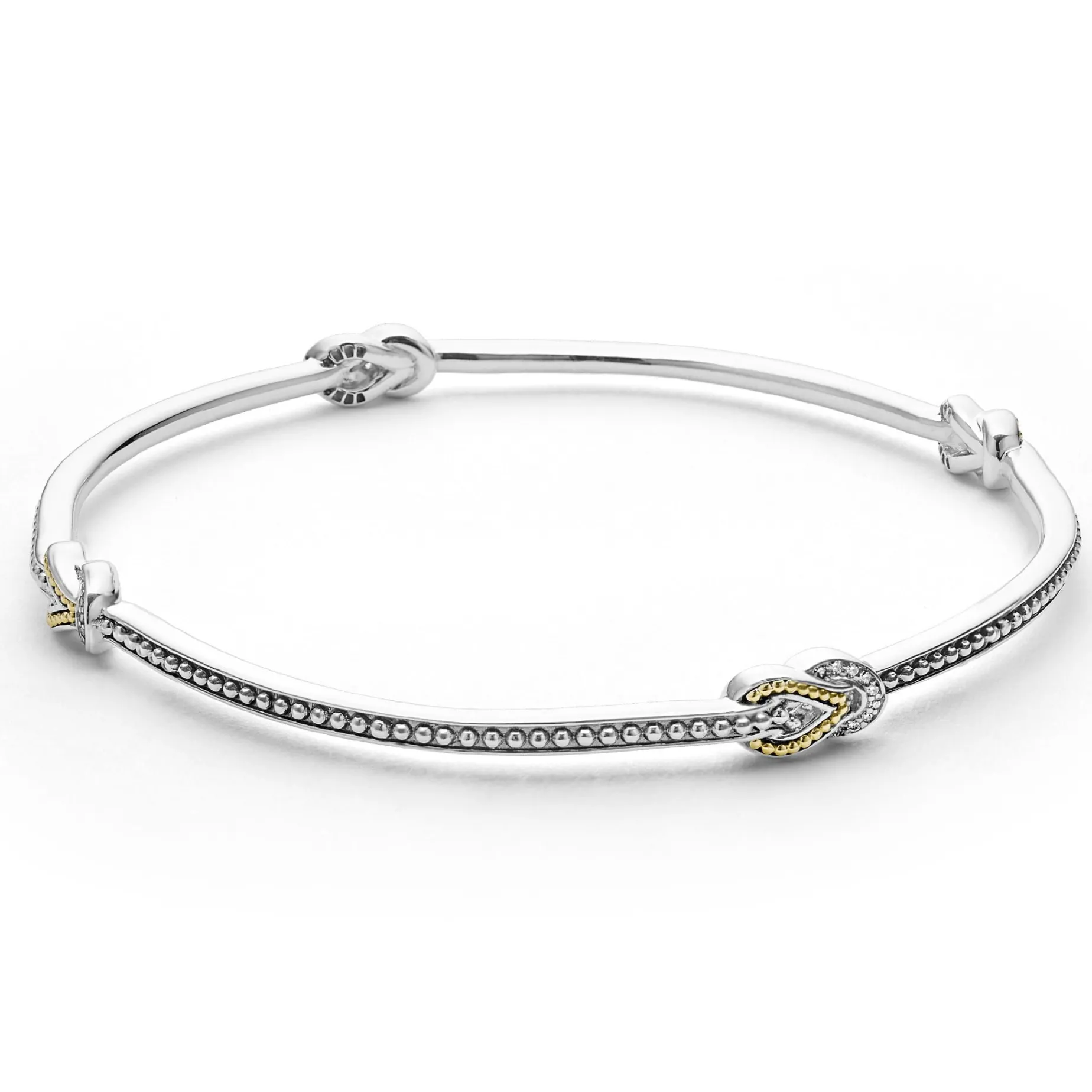 Four Diamond And 18K Gold Knot Motifs Accent This Sterling Silver Caviar Beaded Bangle Bracelet. Lagos Diamonds Are The Highest Quality Natural Stones.