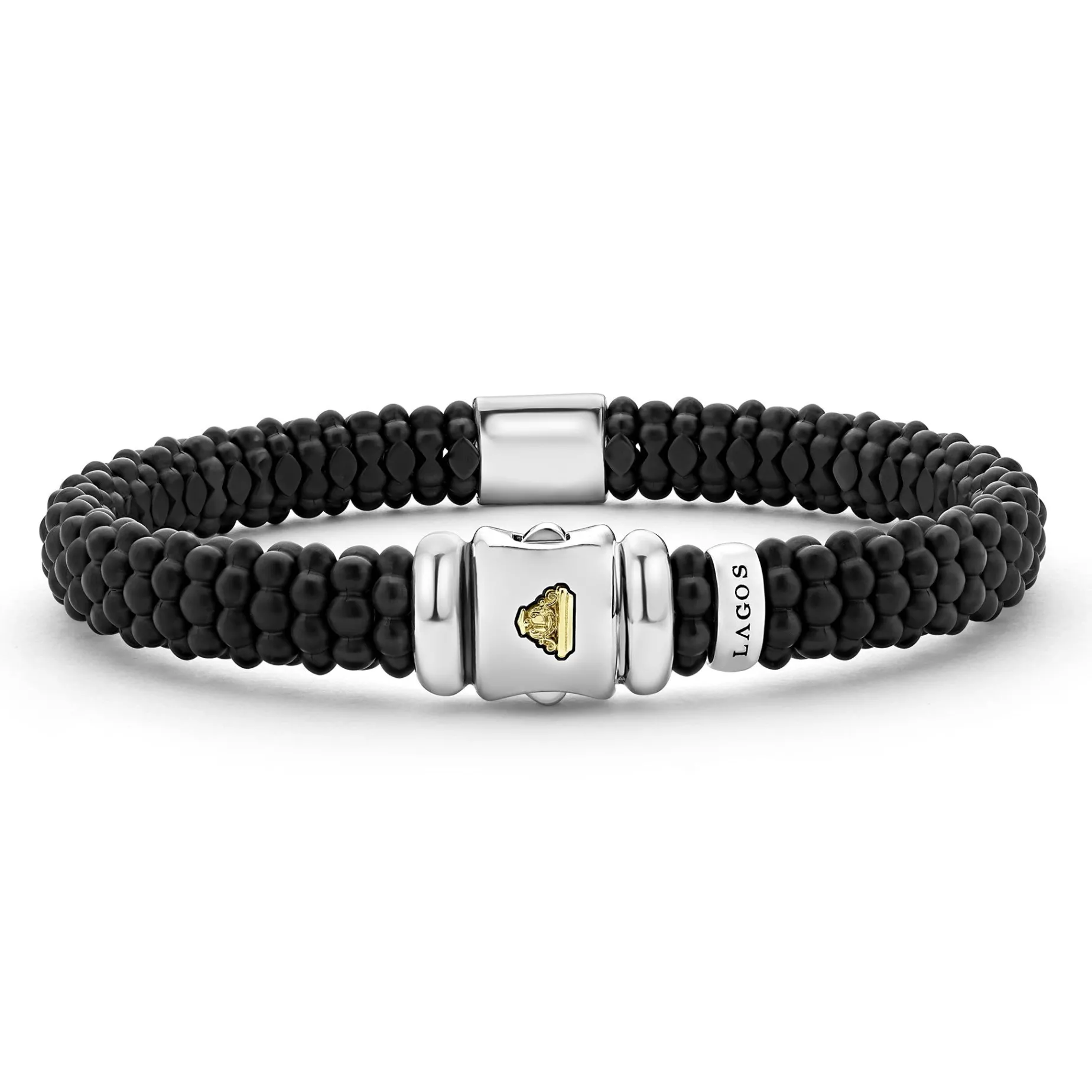 Matte Black Ceramic Caviar Beaded Bracelet Accented By A Satin Finish 18K Gold Single Station Forms This Classic Caviar Beaded Bracelet.