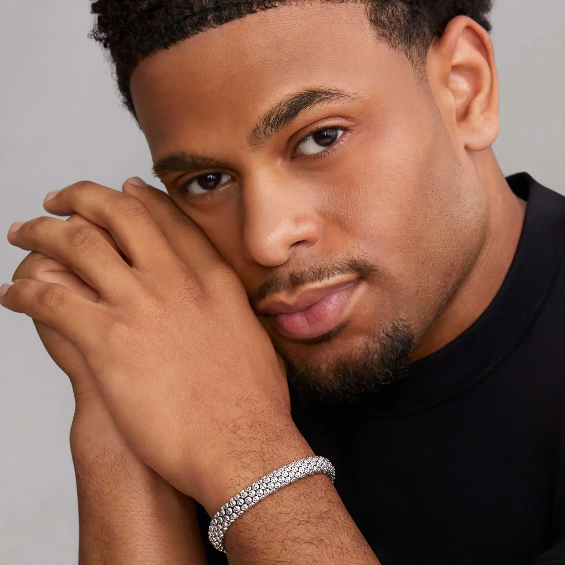 Intricately Crafted Bracelet Made Of Sterling Silver Skull Caviar Beading. Perfect For Those Who Dare To Be Different.