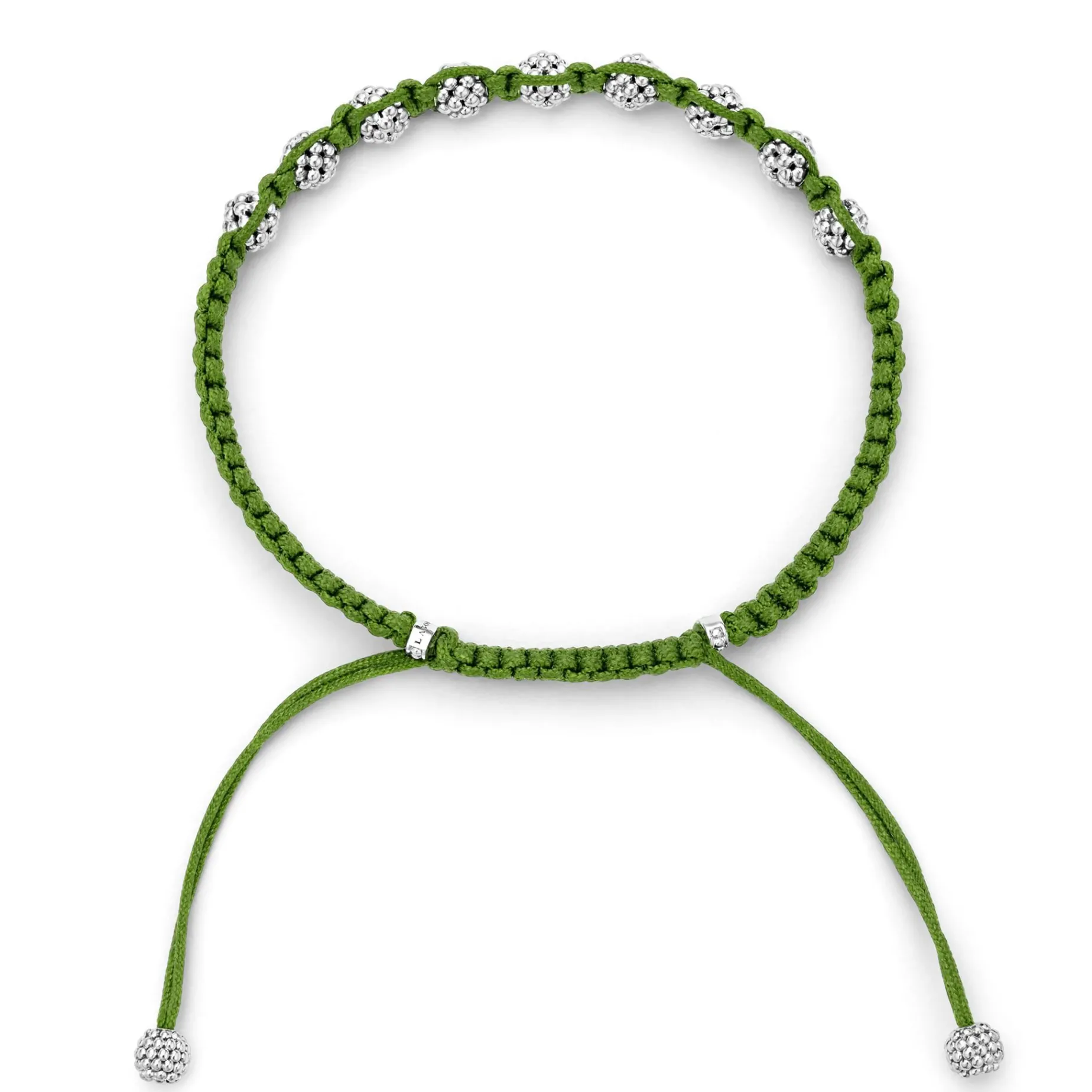 Green Braided Nylon With Sterling Silver Caviar Beading Forms This Versatile Macrame Bracelet.