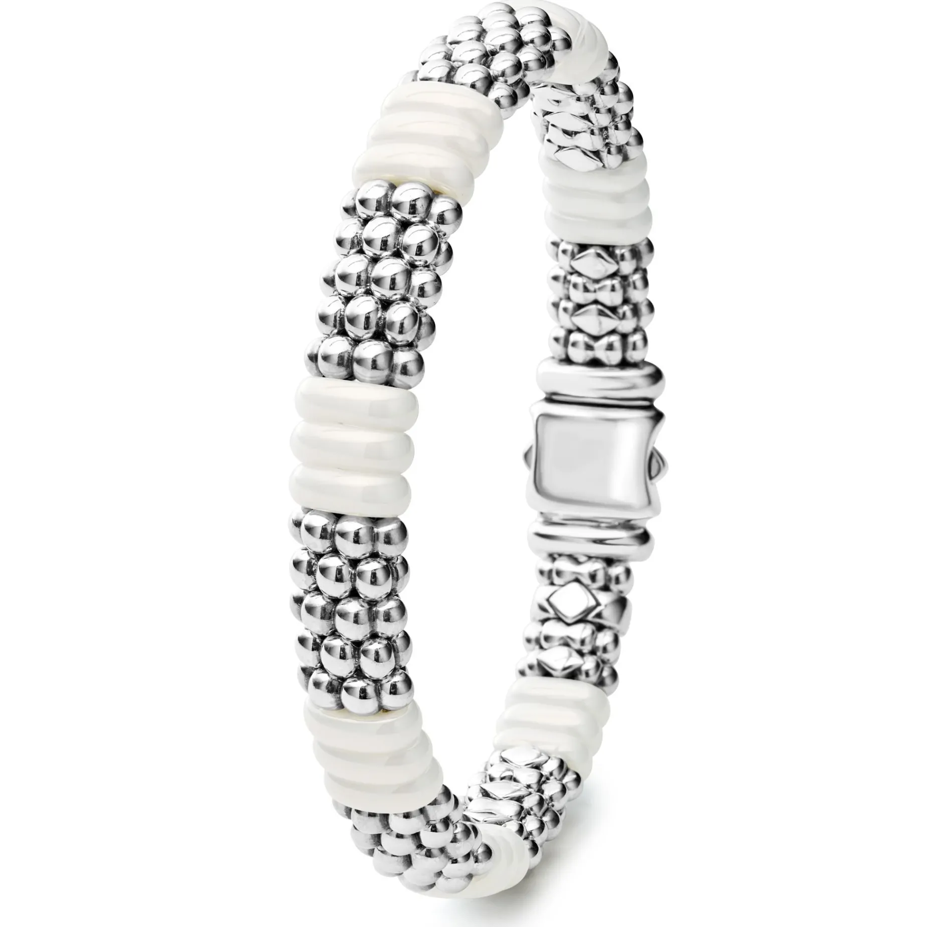 Caviar Beading In Sterling Silver And Smooth White Ceramic Form This Signature Bracelet.