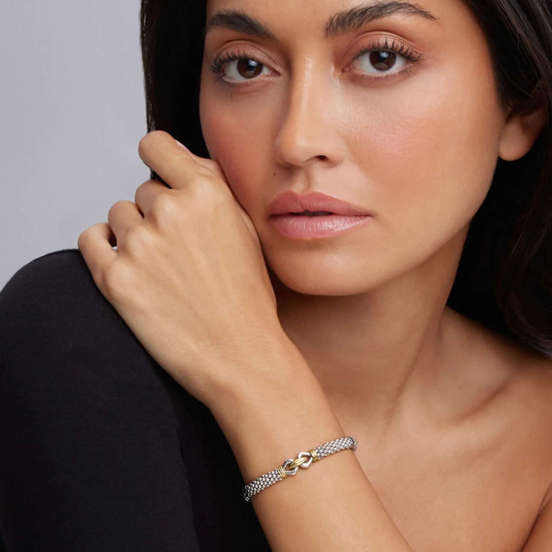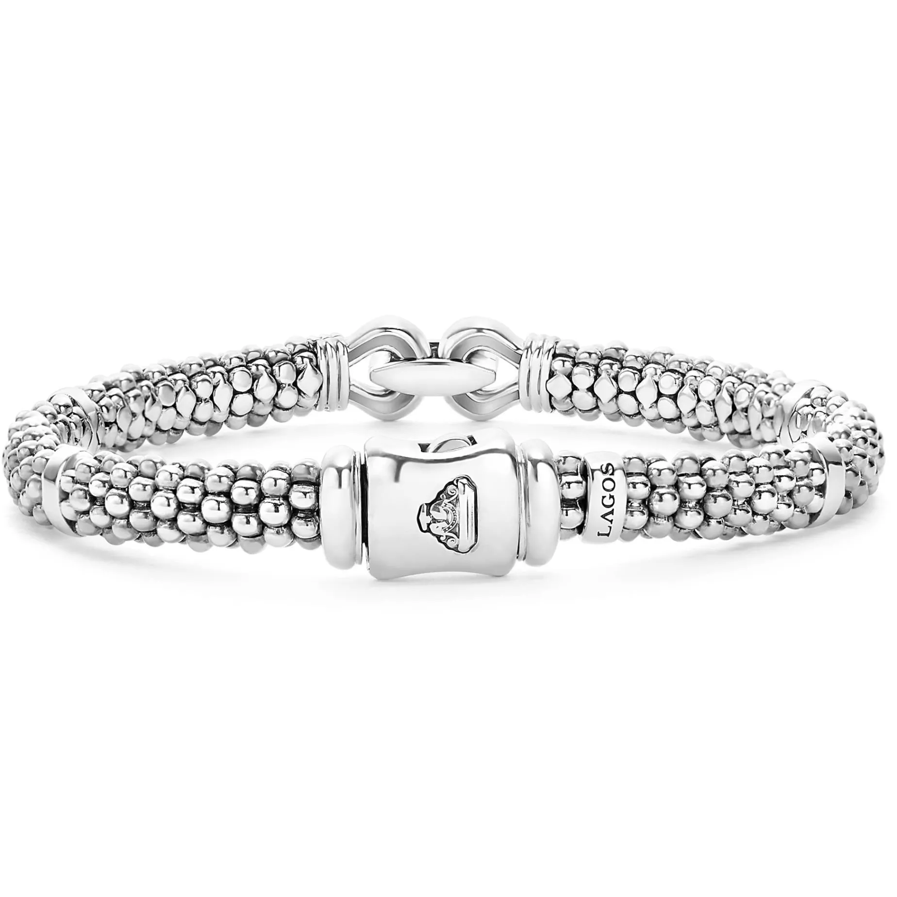 Fluted 18K Gold Stations Highlight A Sterling Silver Buckle On This Classic Caviar Beaded Derby Bracelet.