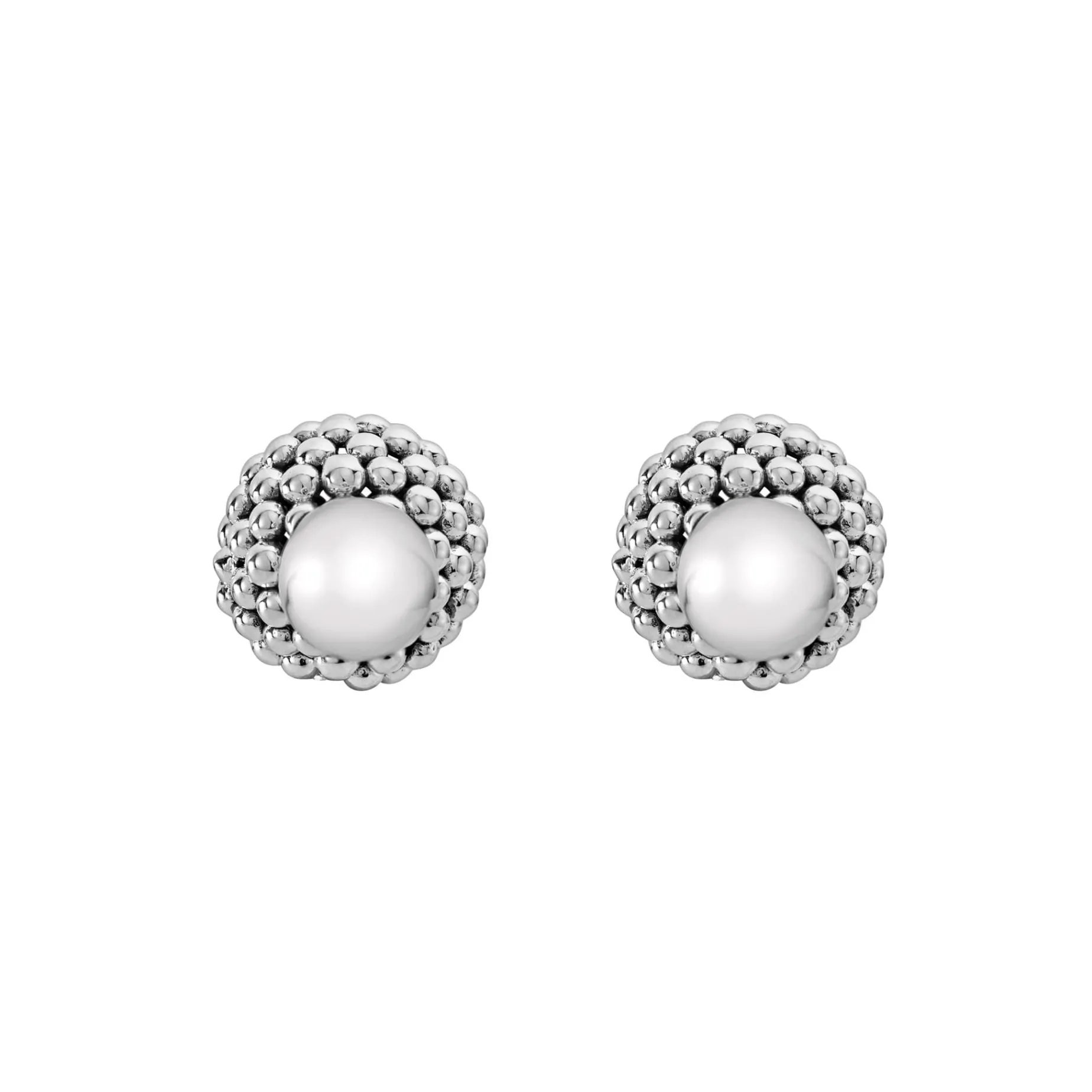 A Lagos Exclusive. Polished Sterling Silver Front Studs Pair With Sterling Silver Caviar Beaded Backs On These Chic Front-Back Earrings.