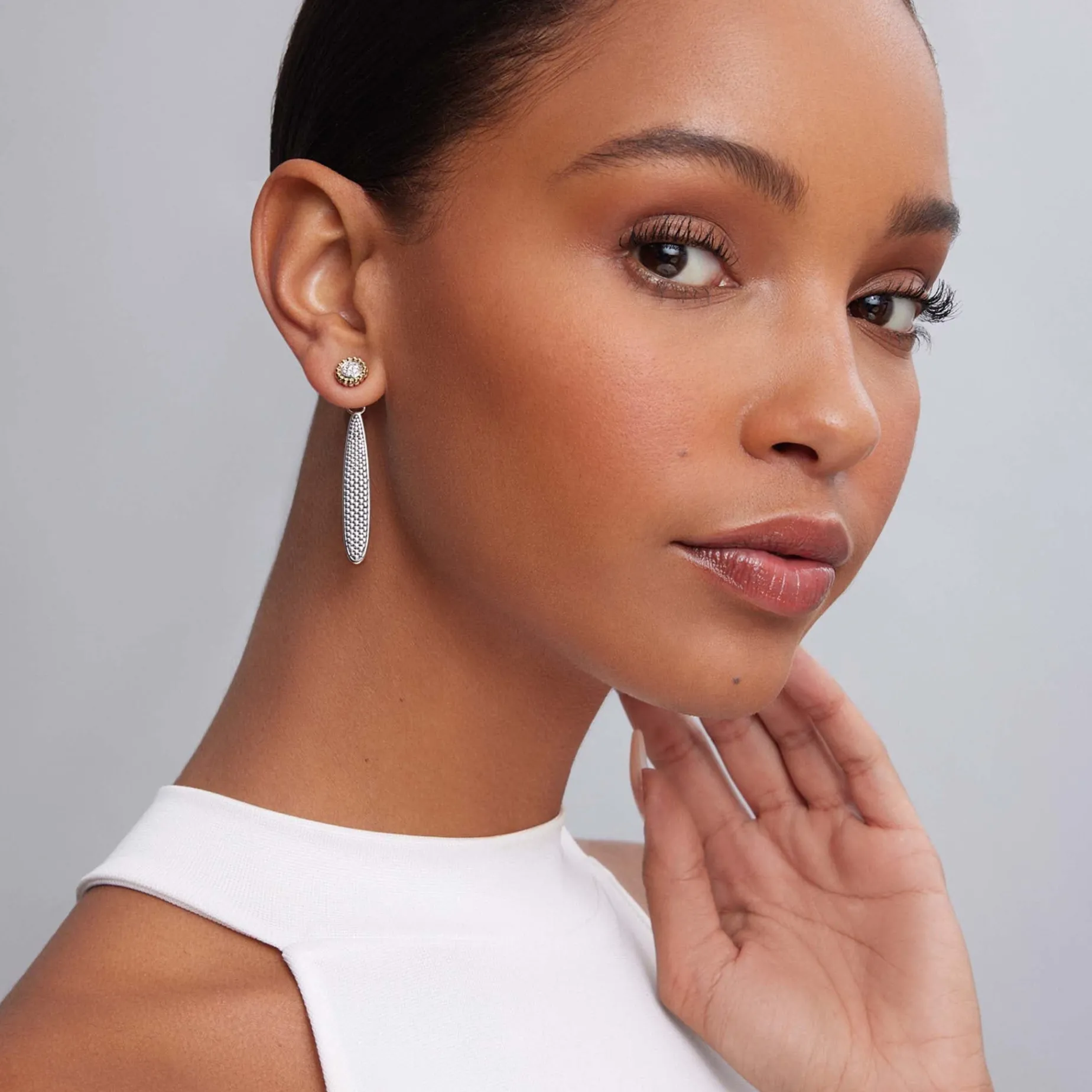 Pavé Diamond Circle Stud Earrings Framed By 18K Gold Caviar Beading. Lagos Diamonds Are The Highest Quality Natural Stones.