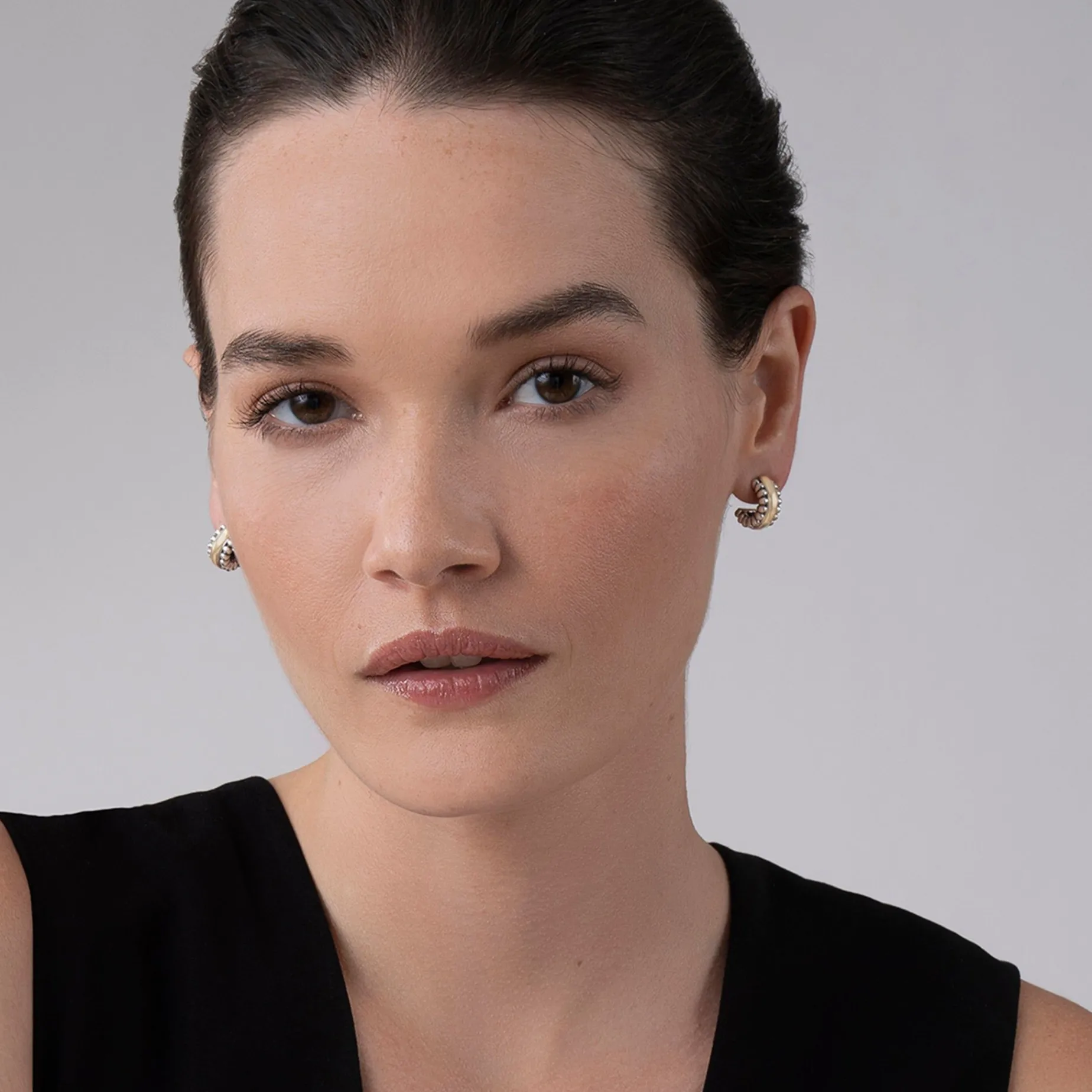Sterling Silver Caviar Beading With Smooth 18K Gold Form These Mini Hoop Earrings.