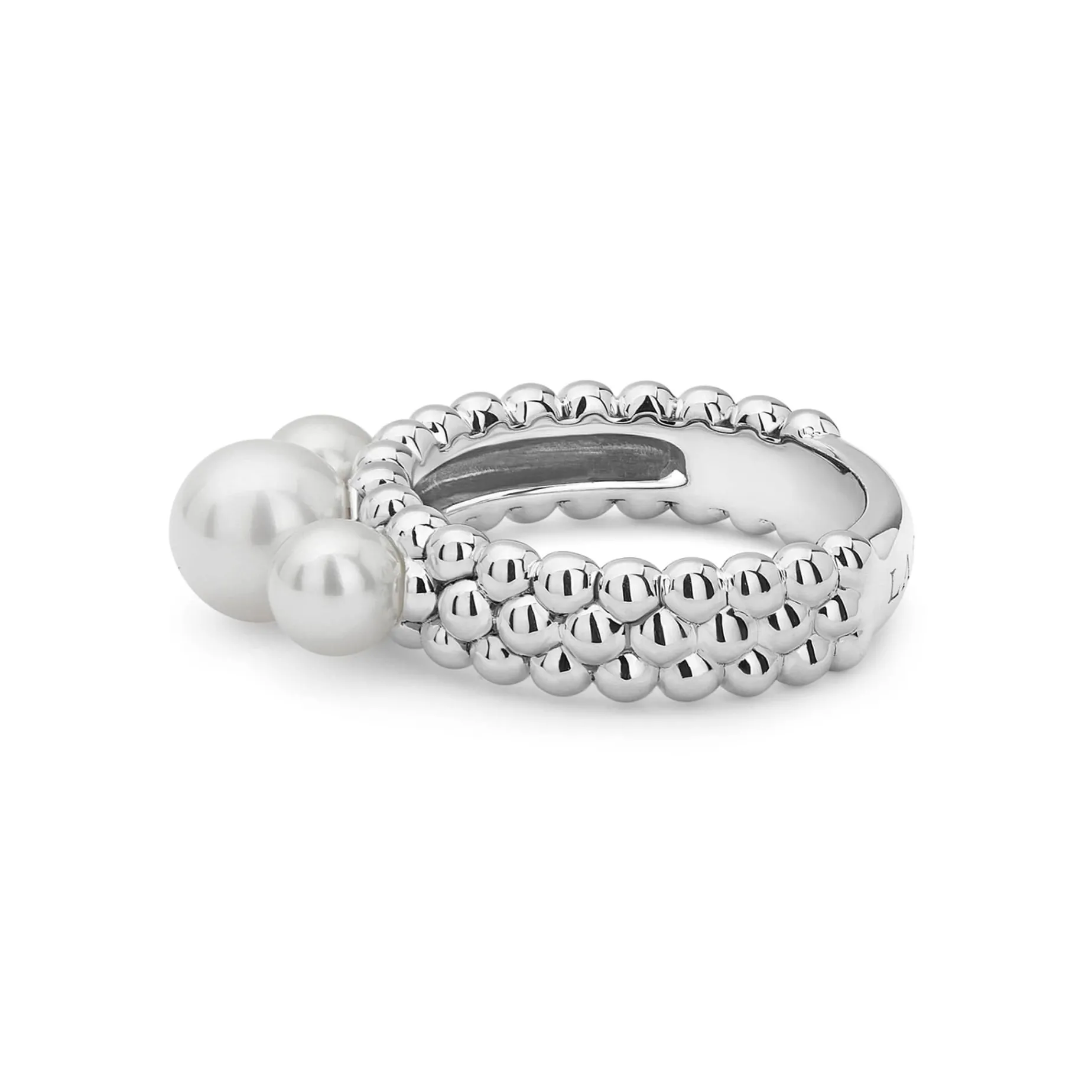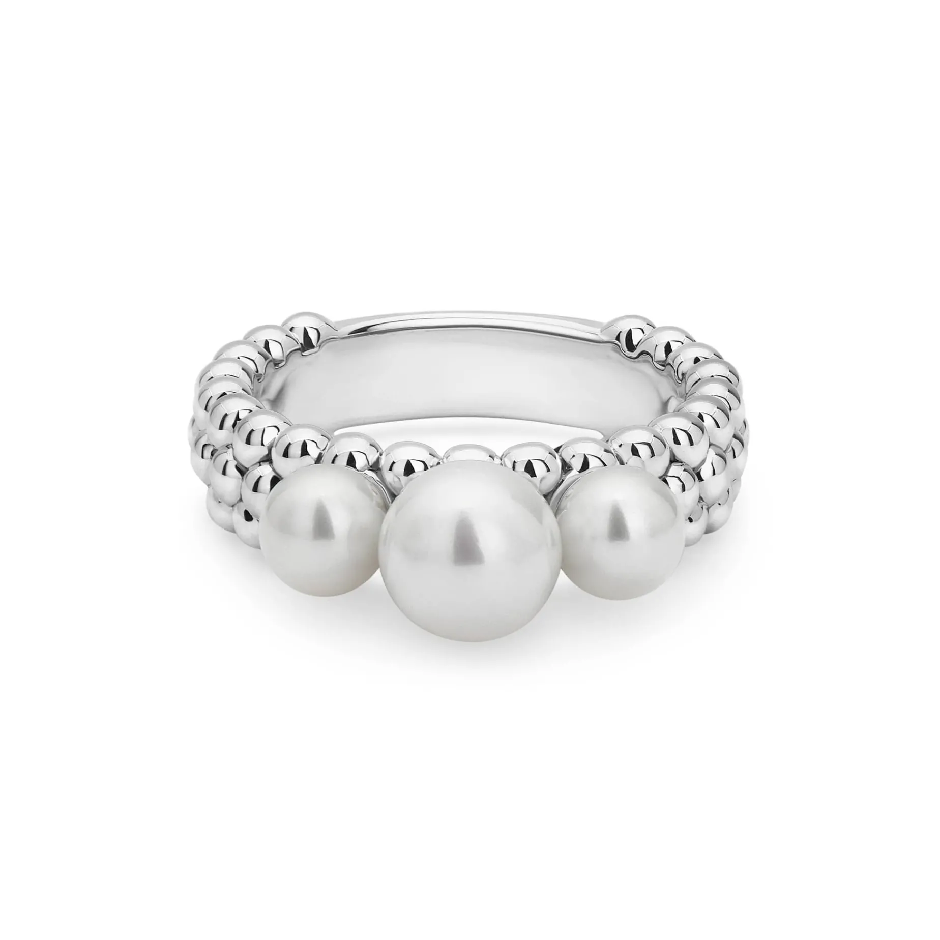 Three Cultured Freshwater Pearls Form This Statement Ring With Sterling Silver Caviar Beading.