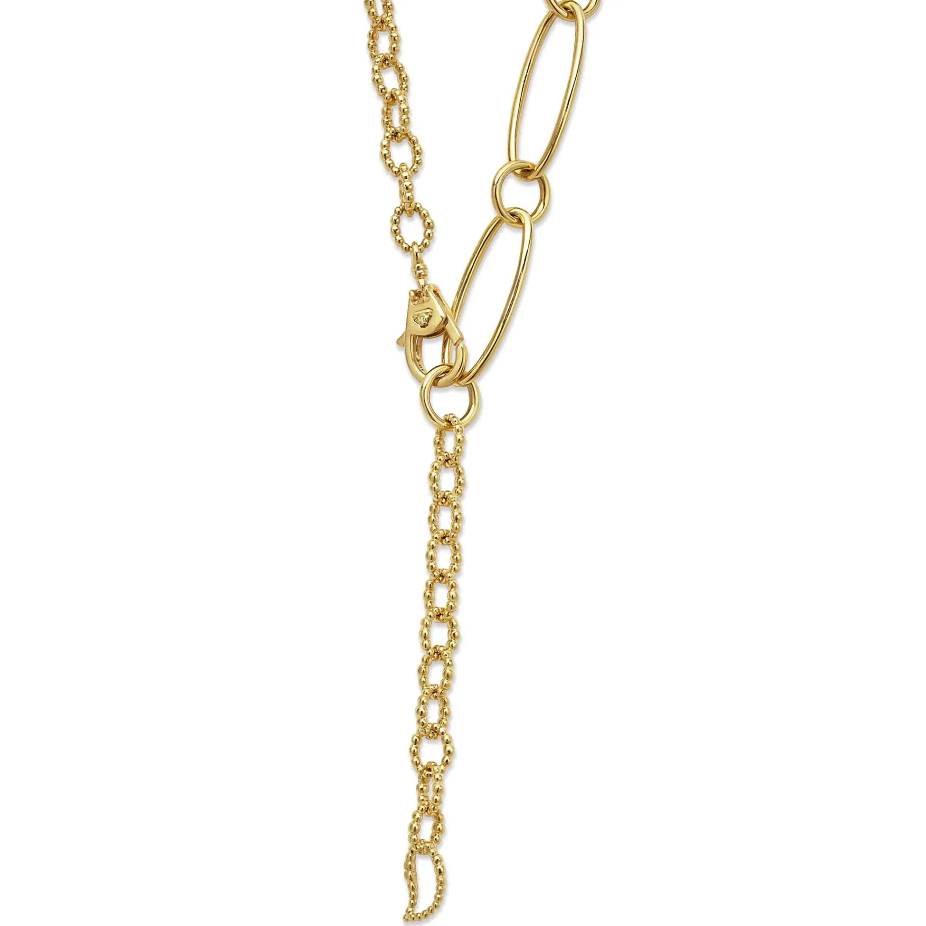 18K Gold Variations Of Caviar Beading & Fluting Elements Form This Timeless Link Necklace.