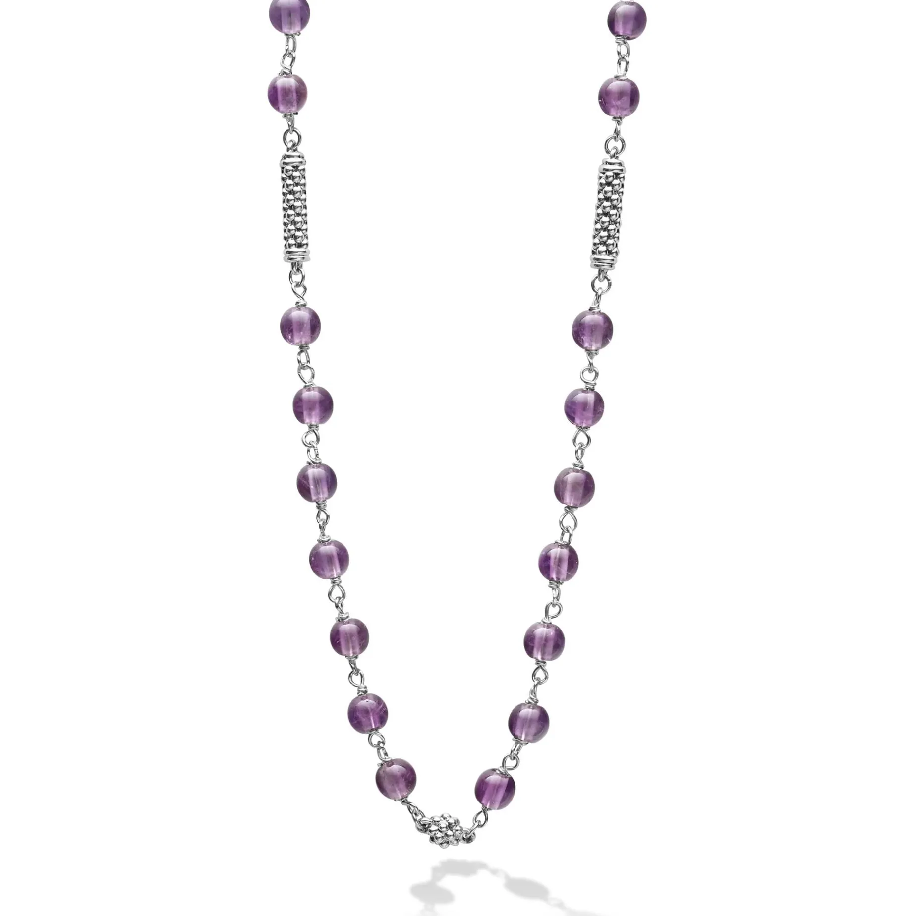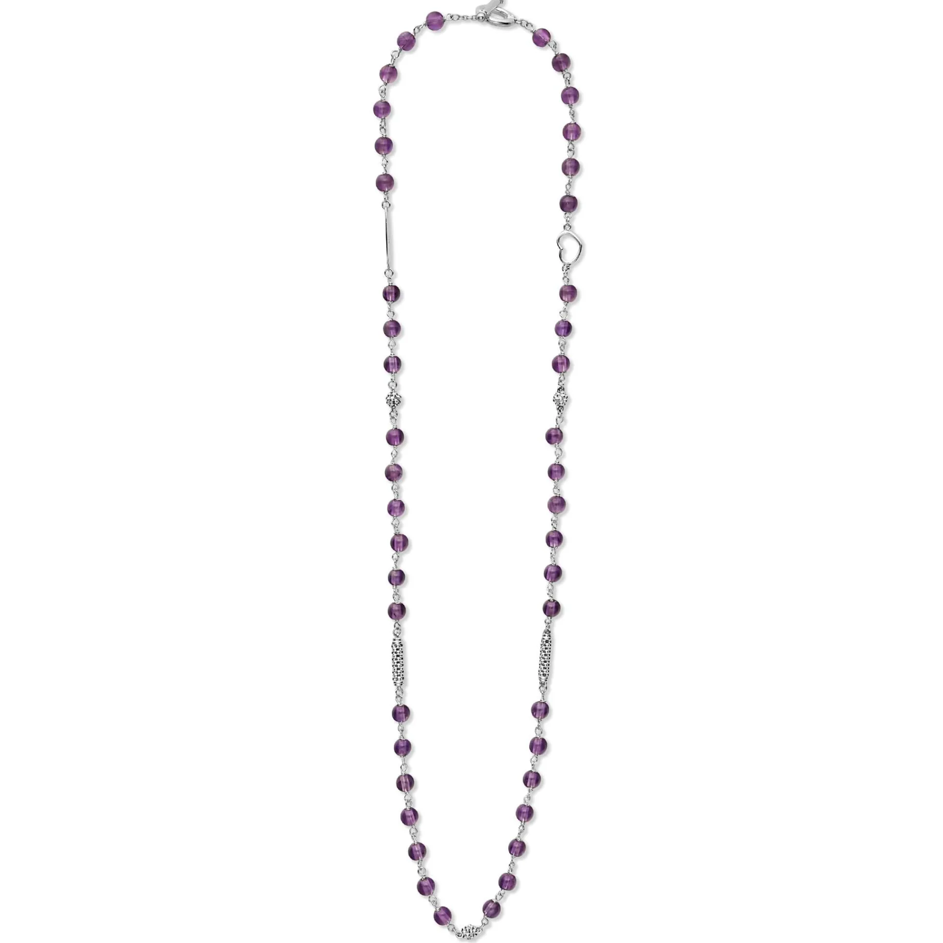 Amethyst And Sterling Silver Caviar Beaded Necklace Finished With A Toggle Clasp. Necklace Adjustable 16 To 18 Inches.