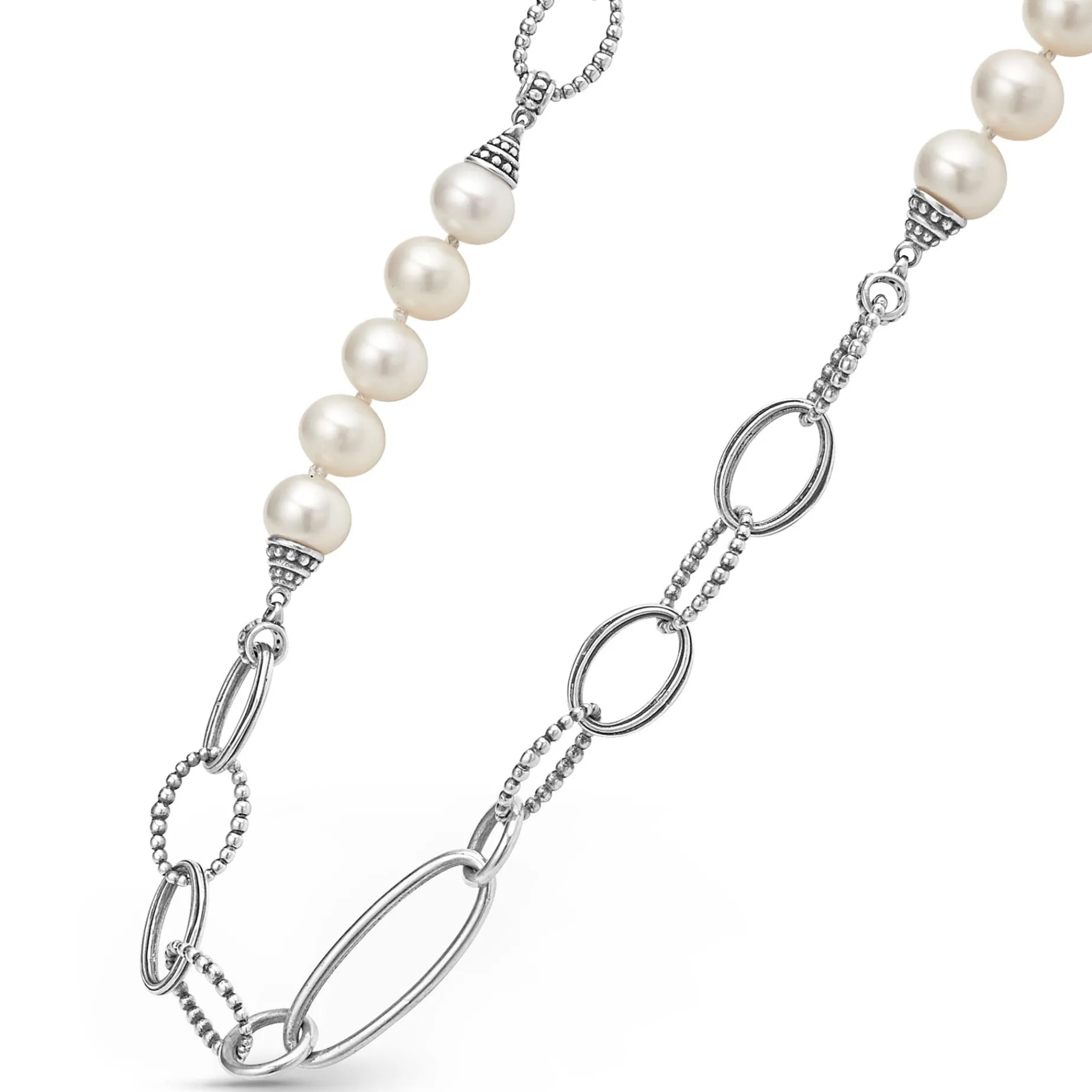 Five Cultured Freshwater Pearl Stations On A Signature Sterling Silver Caviar Beaded Link Necklace.