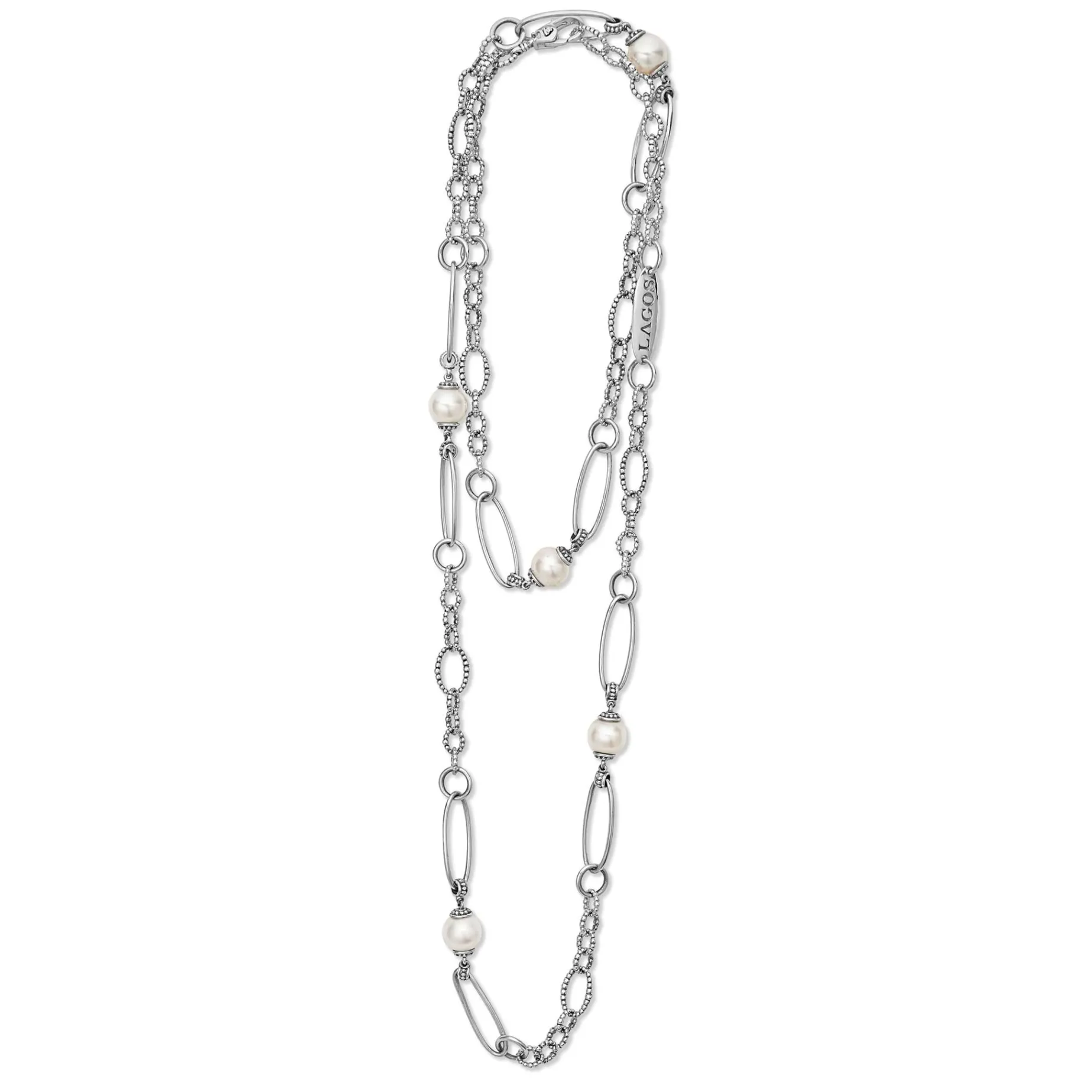 Five Cultured Freshwater Pearl Stations On A Signature Sterling Silver Caviar Beaded Link Necklace.