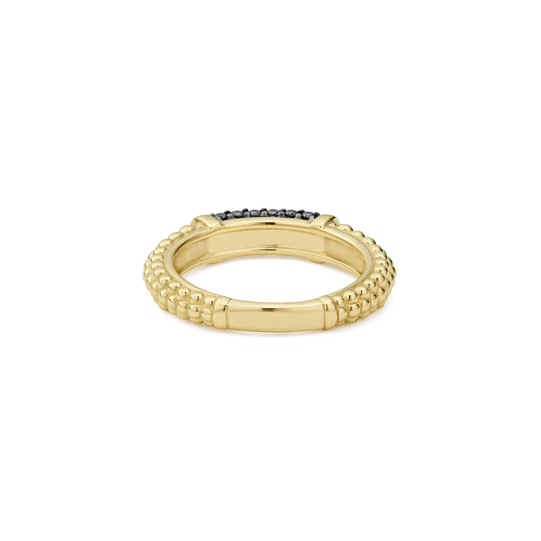 Pavé Black Diamonds Set In 18K Gold With Caviar Beaded Accents On This Classic Band Ring.