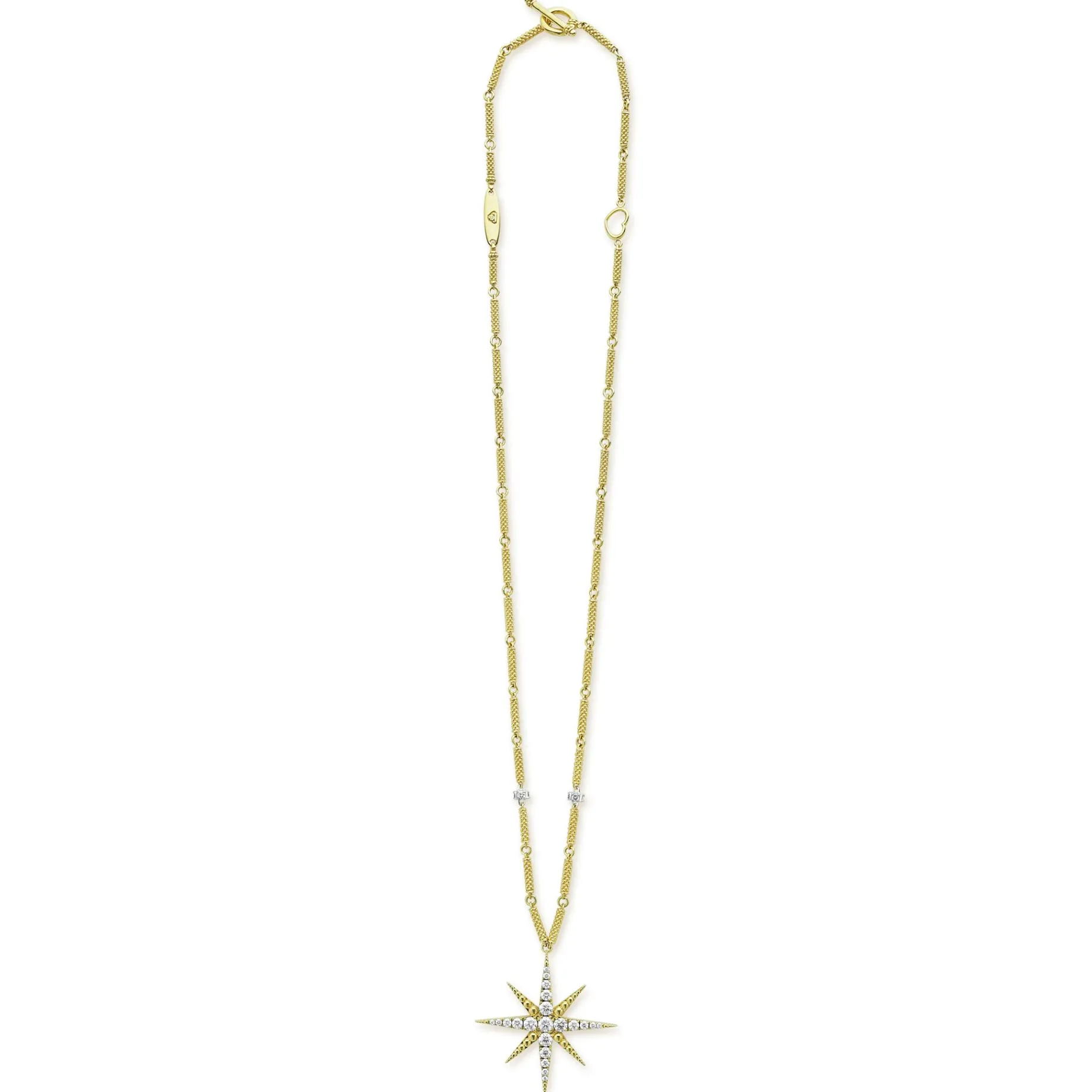 Diamonds And 18K Gold Superfine Caviar Beading In A Star Motif Form This Pendant Necklace. Lagos Diamonds Are The Highest Quality Natural Stones.