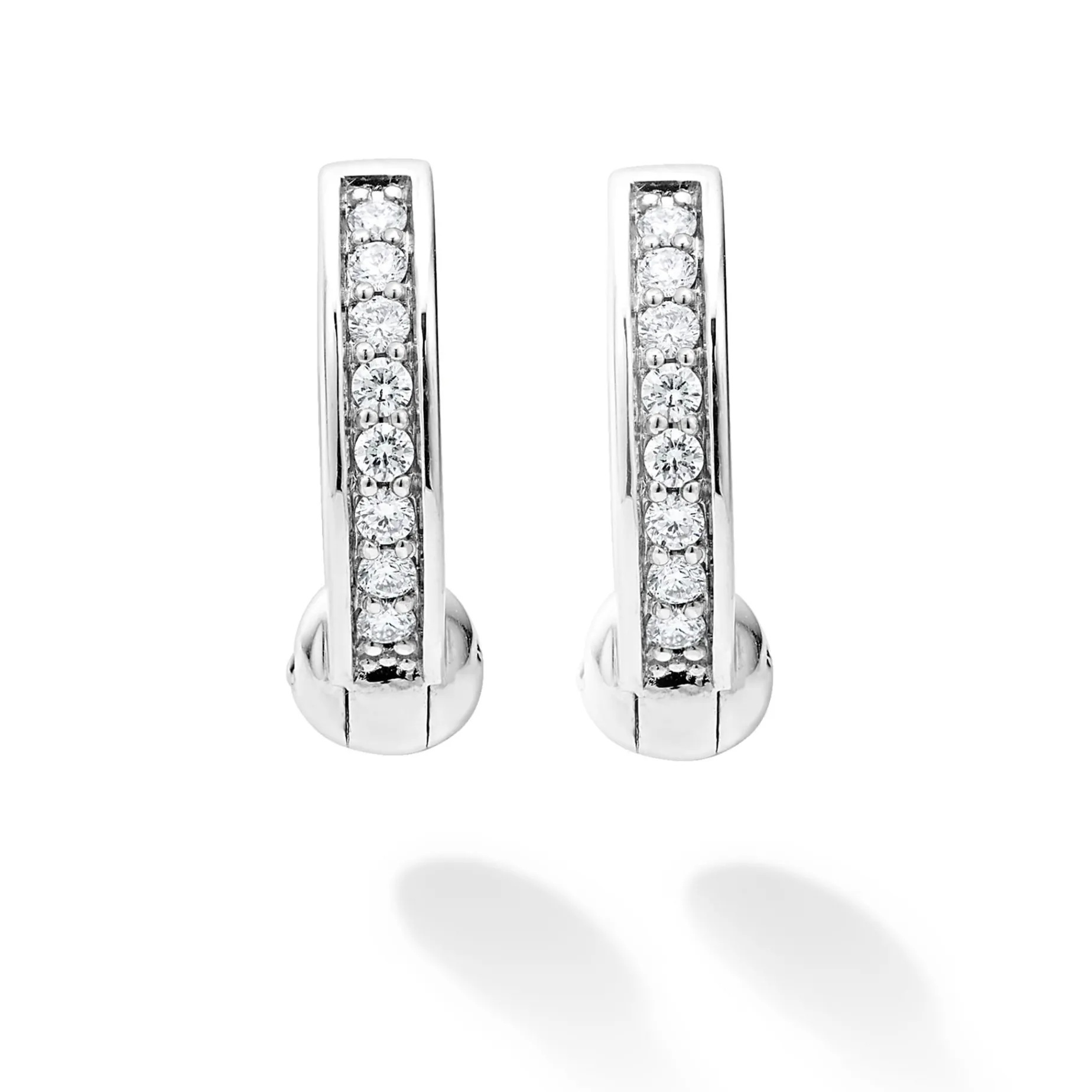 Diamonds Set In A Smooth Sterling Silver Circle Motif Form This Timeless Huggie Earring. Lagos Diamonds Are The Highest Quality Natural Stones.