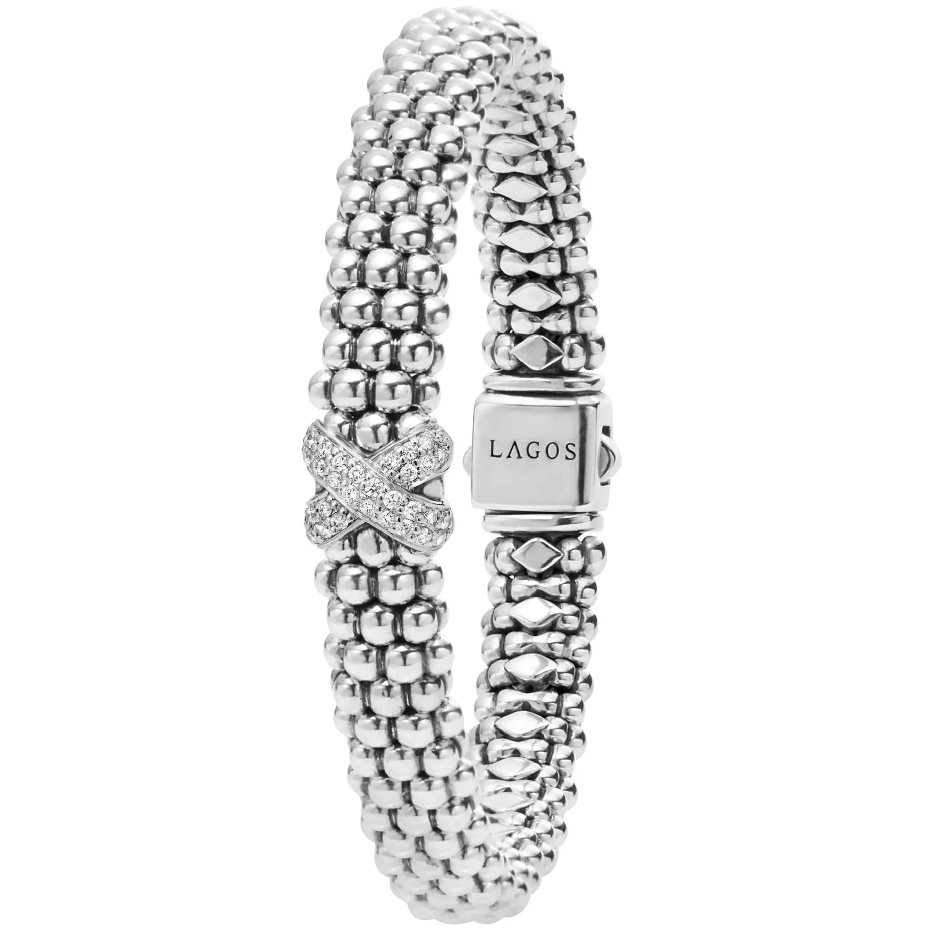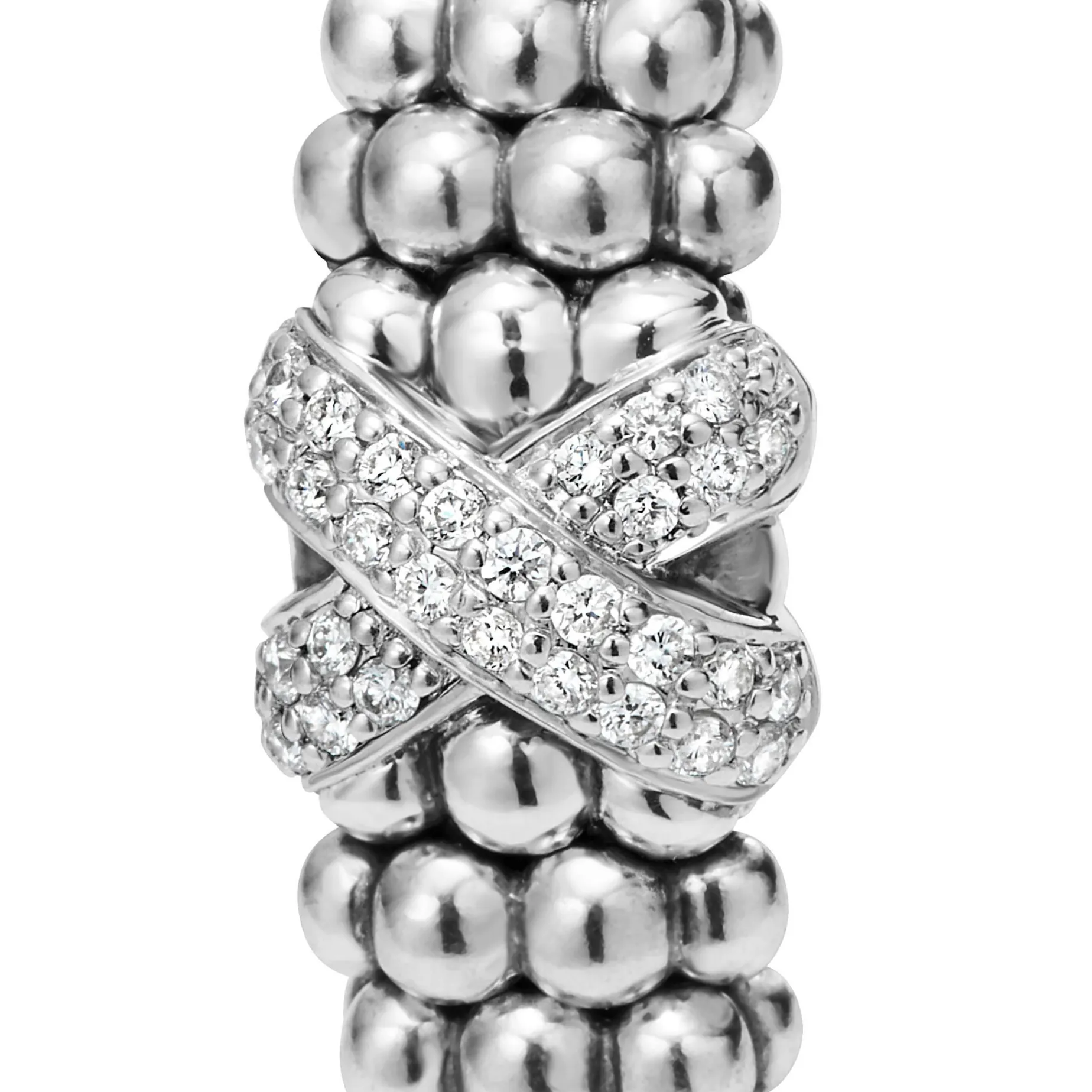 A Diamond Station Wraps This Signature Sterling Silver Caviar Beaded Bracelet. Lagos Diamonds Are The Highest Quality Natural Stones.