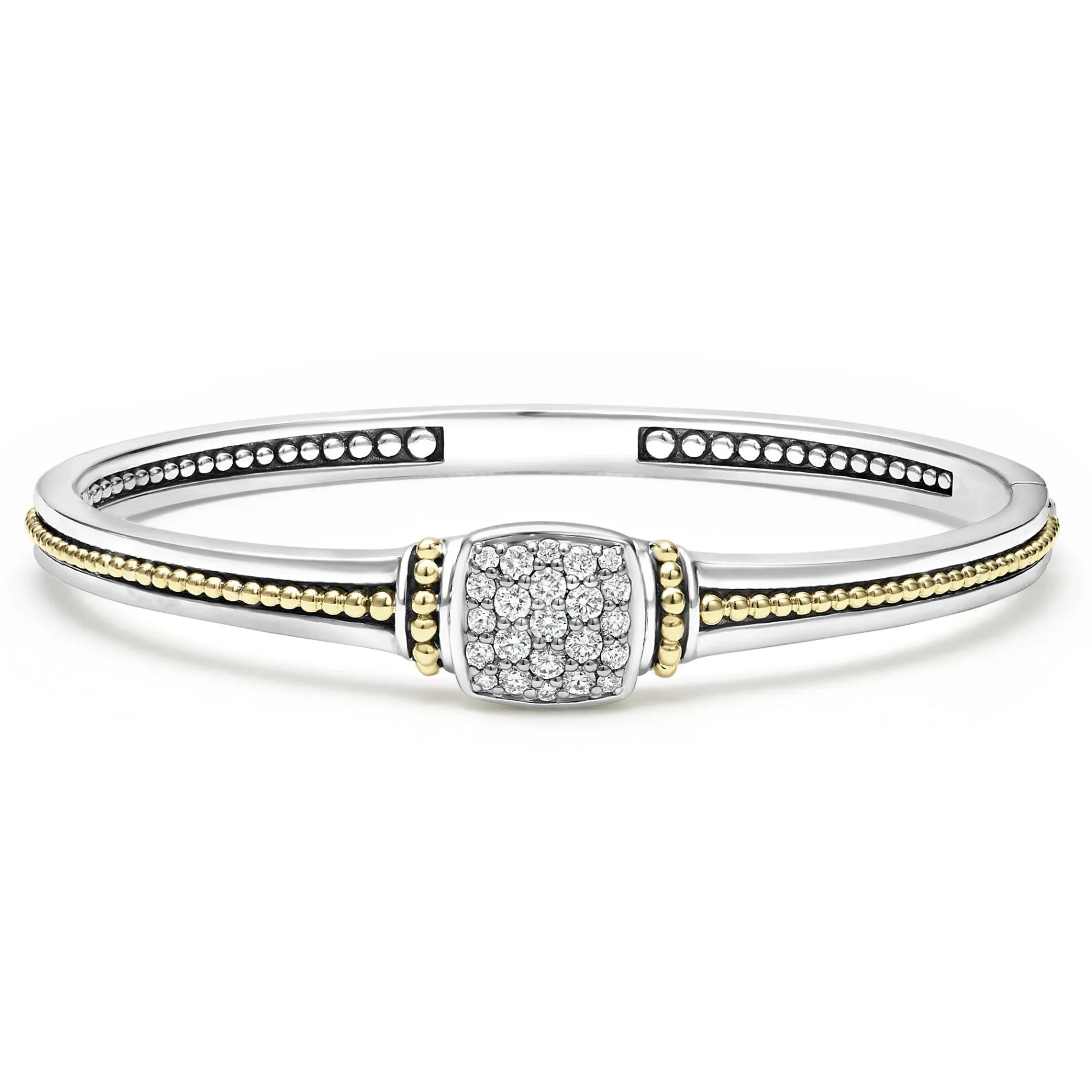 A Lagos Exclusive. Diamonds And 18K Gold Caviar Beading Forms This Unique Cuff Bracelet. Lagos Diamonds Are The Highest Quality Natural Stones.