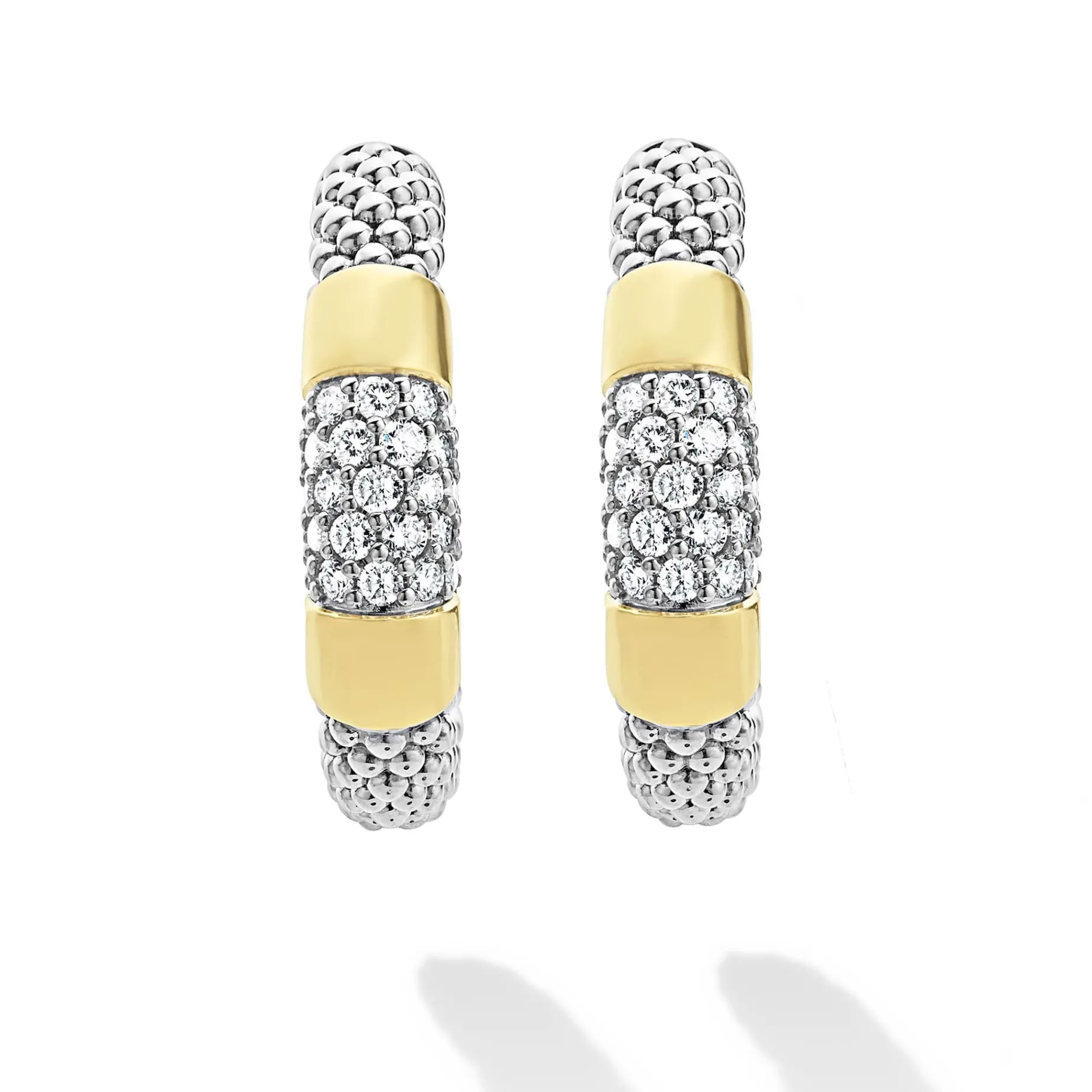 Diamond Hoop Earrings With Smooth 18K Gold And Classic Sterling Silver Caviar Beading. Lagos Diamonds Are The Highest Quality Natural Stones.