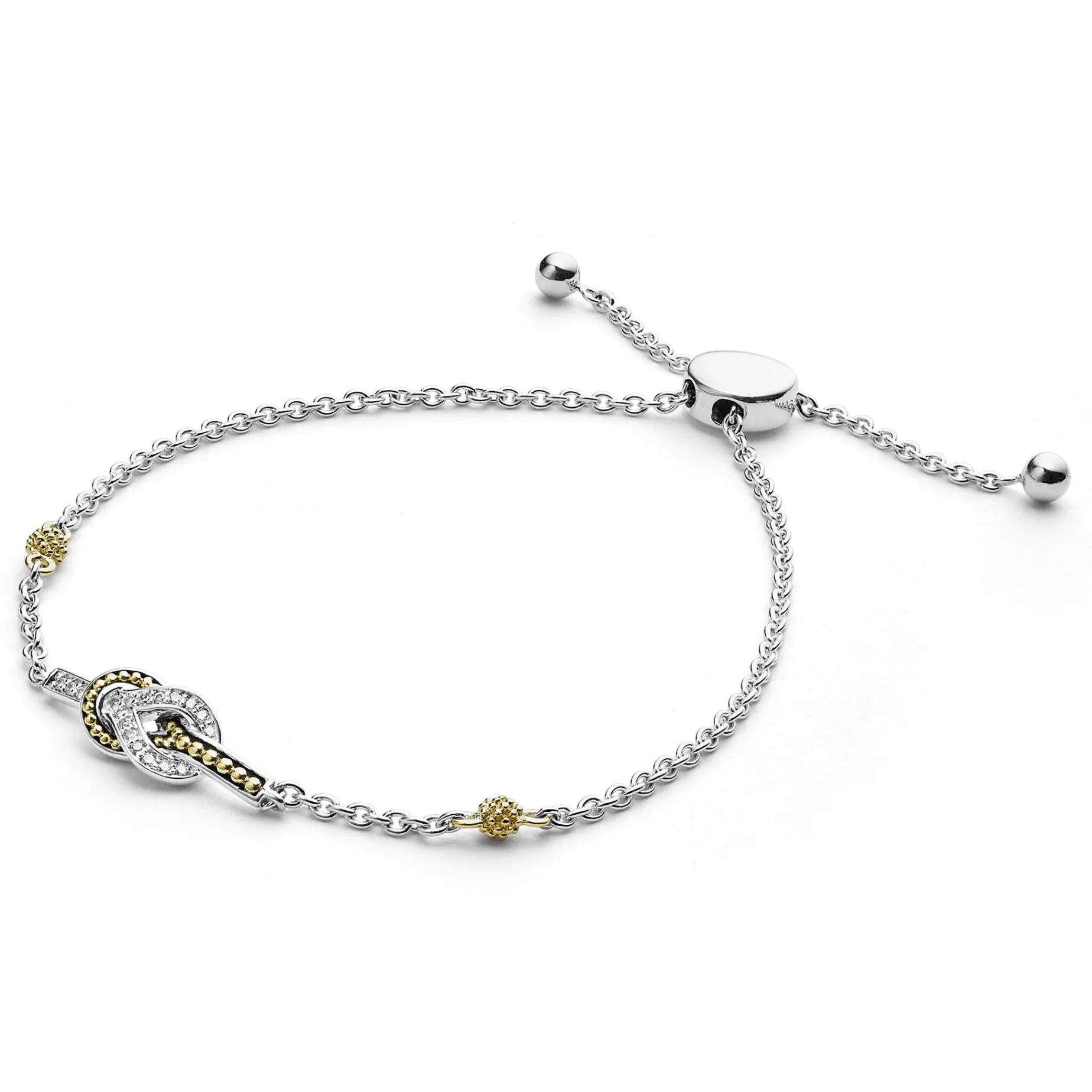 Diamonds And 18K Gold Woven In A Knot Motif Form This Newport Adjustable Bolo Bracelet. Lagos Diamonds Are The Highest Quality Natural Stones.