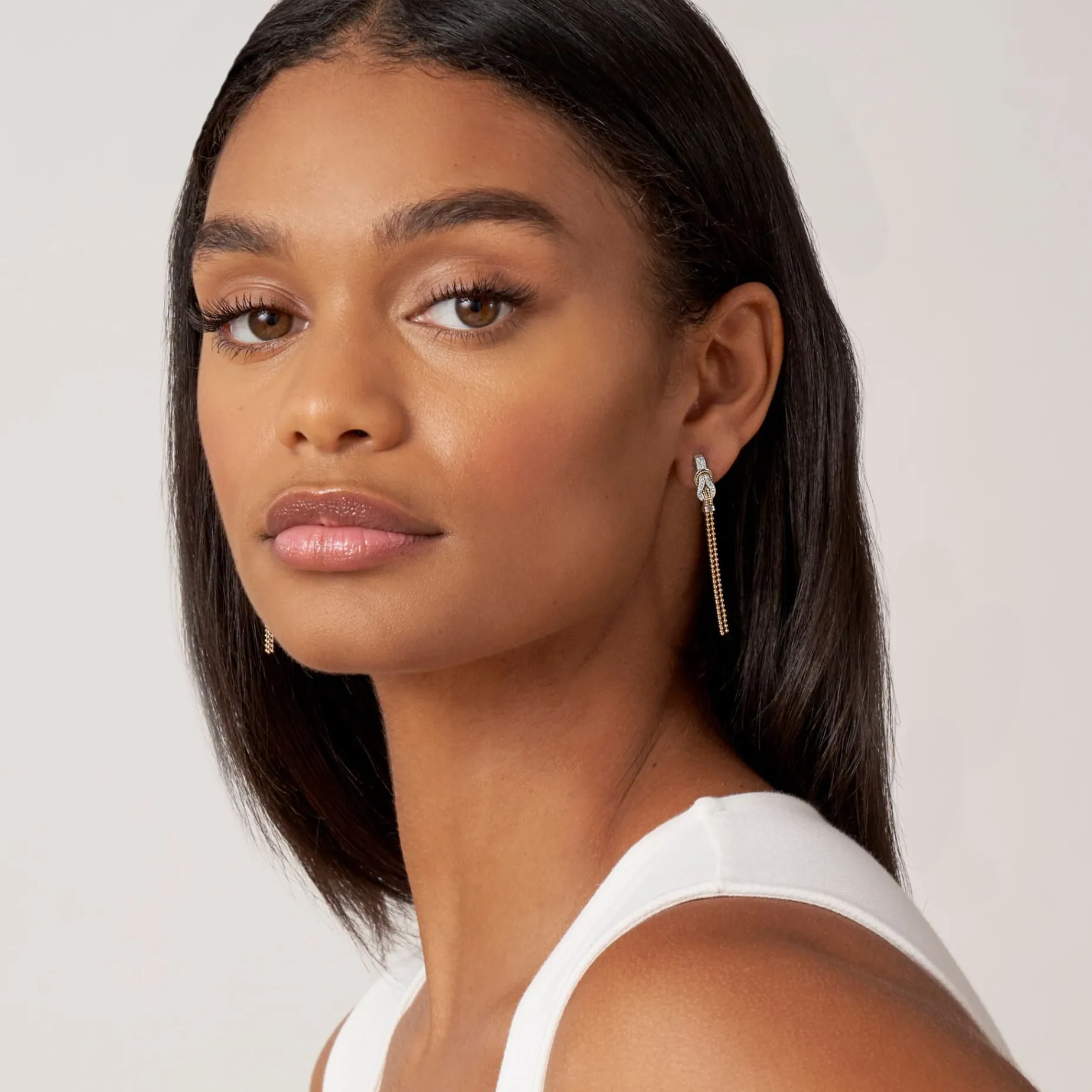 Diamonds And 18K Gold Woven In A Knot Motif Form These Unique Newport Stud Earrings Accented With A Gold Caviar Drop Tassel. Lagos Diamonds Are The Highest Quality Natural Stones.