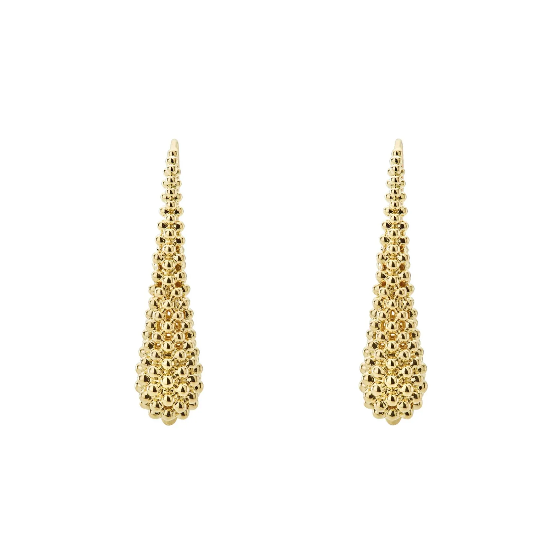 Expertly Crafted 18K Gold Caviar Beading Surrounds These Classic Drop Earrings.