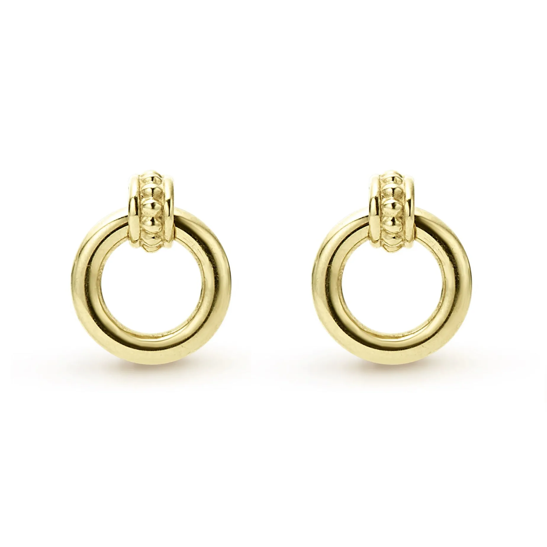 Gold Circle Stud Earrings With An 18K Gold Caviar Accent.