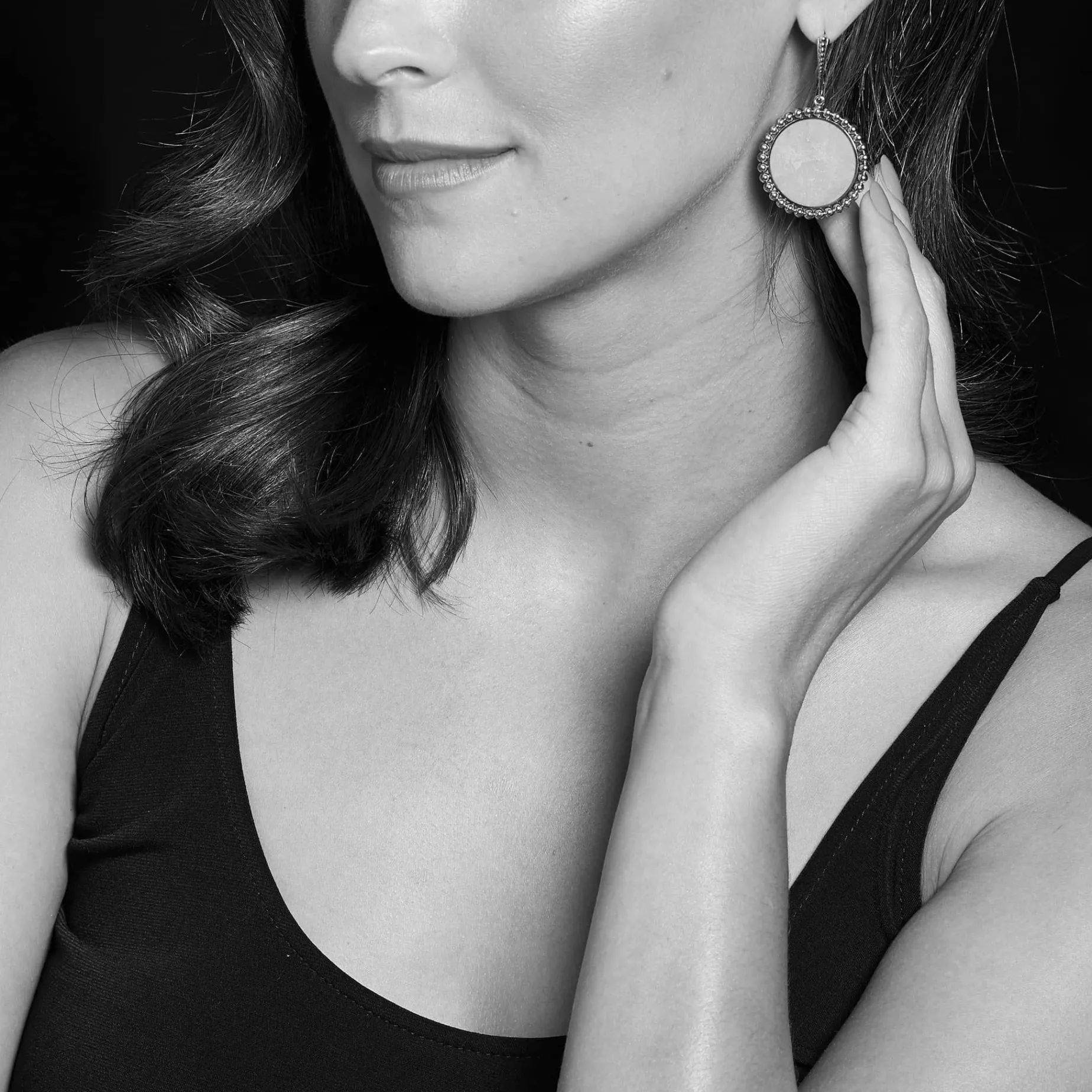 Mother Of Pearl Gemstone Circle Drop Earrings Surrounded By Sterling Silver Caviar Beading.