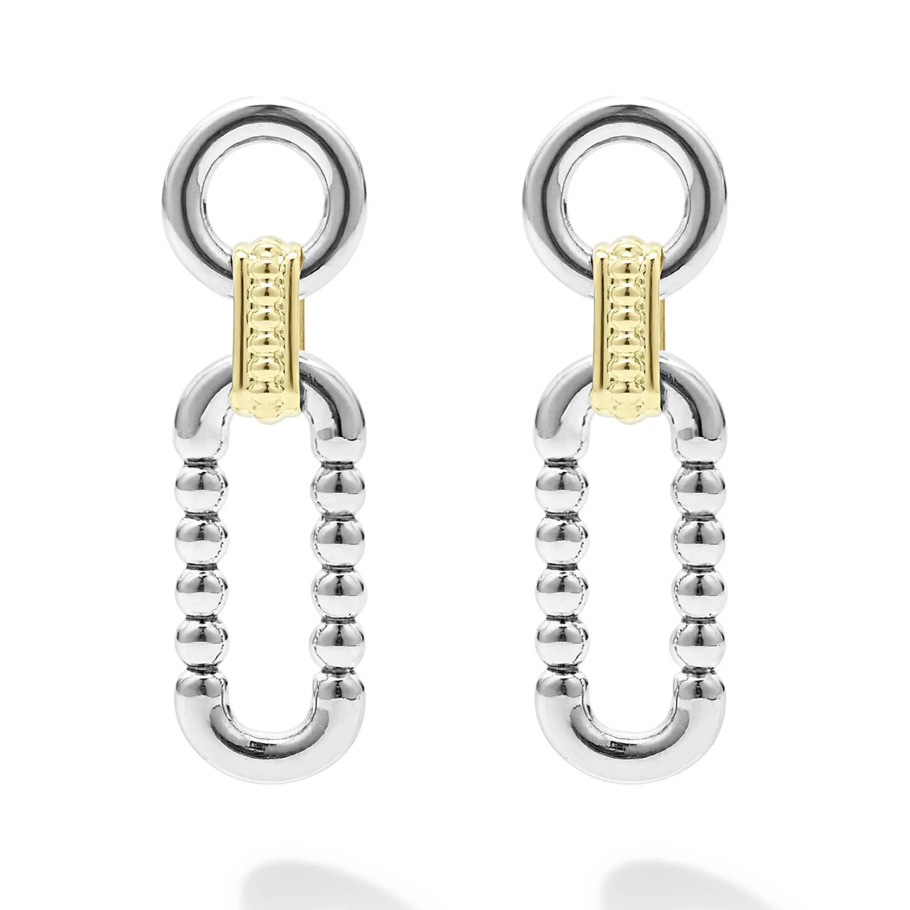 Sterling Silver & 18K Gold Variations Of Caviar Beading And Fluting Elements Form These Link Drop Earrings.