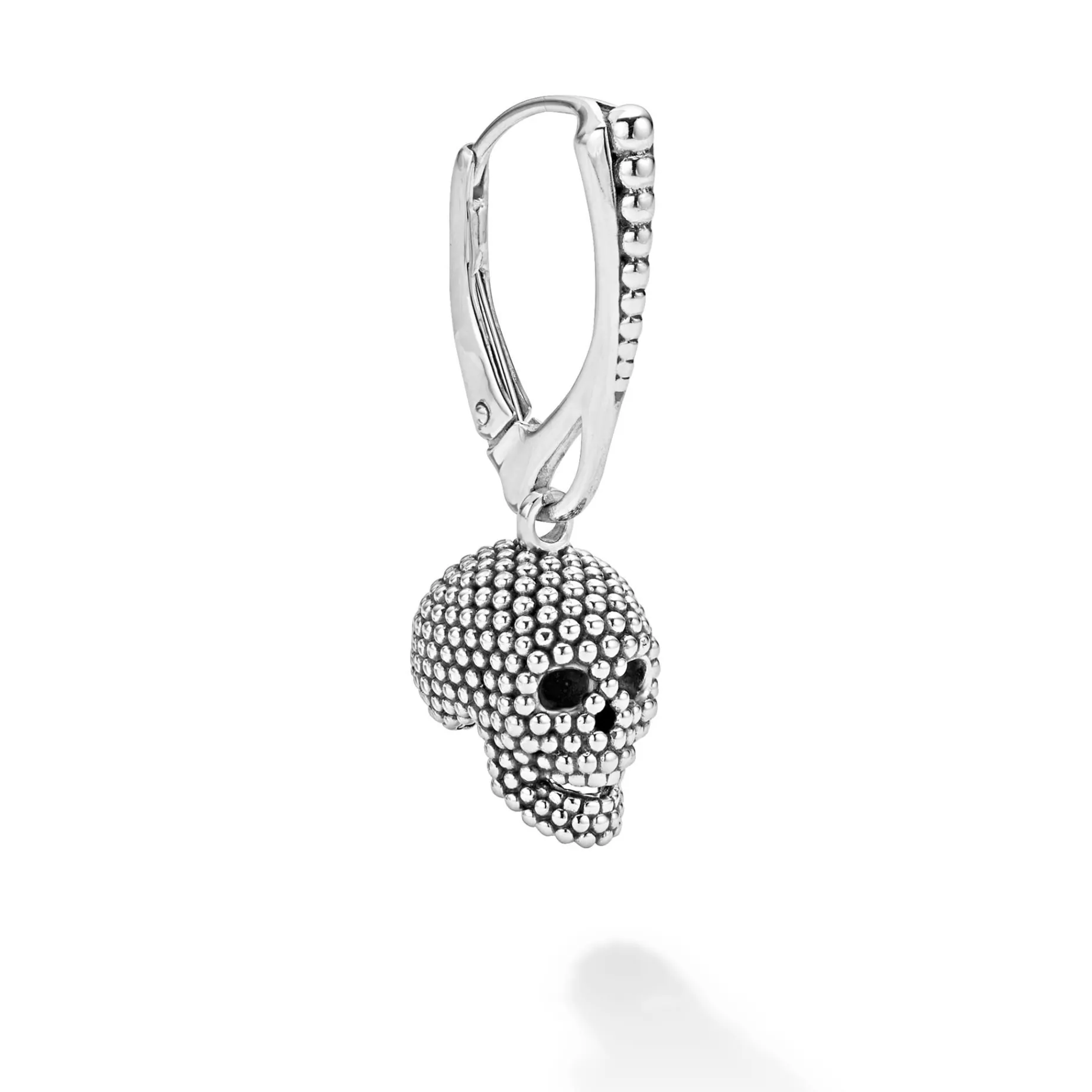 Artfully Crafted Skull Earring Made Of Sterling Silver Caviar Beading.Accommodates Most Lagos Necklaces.