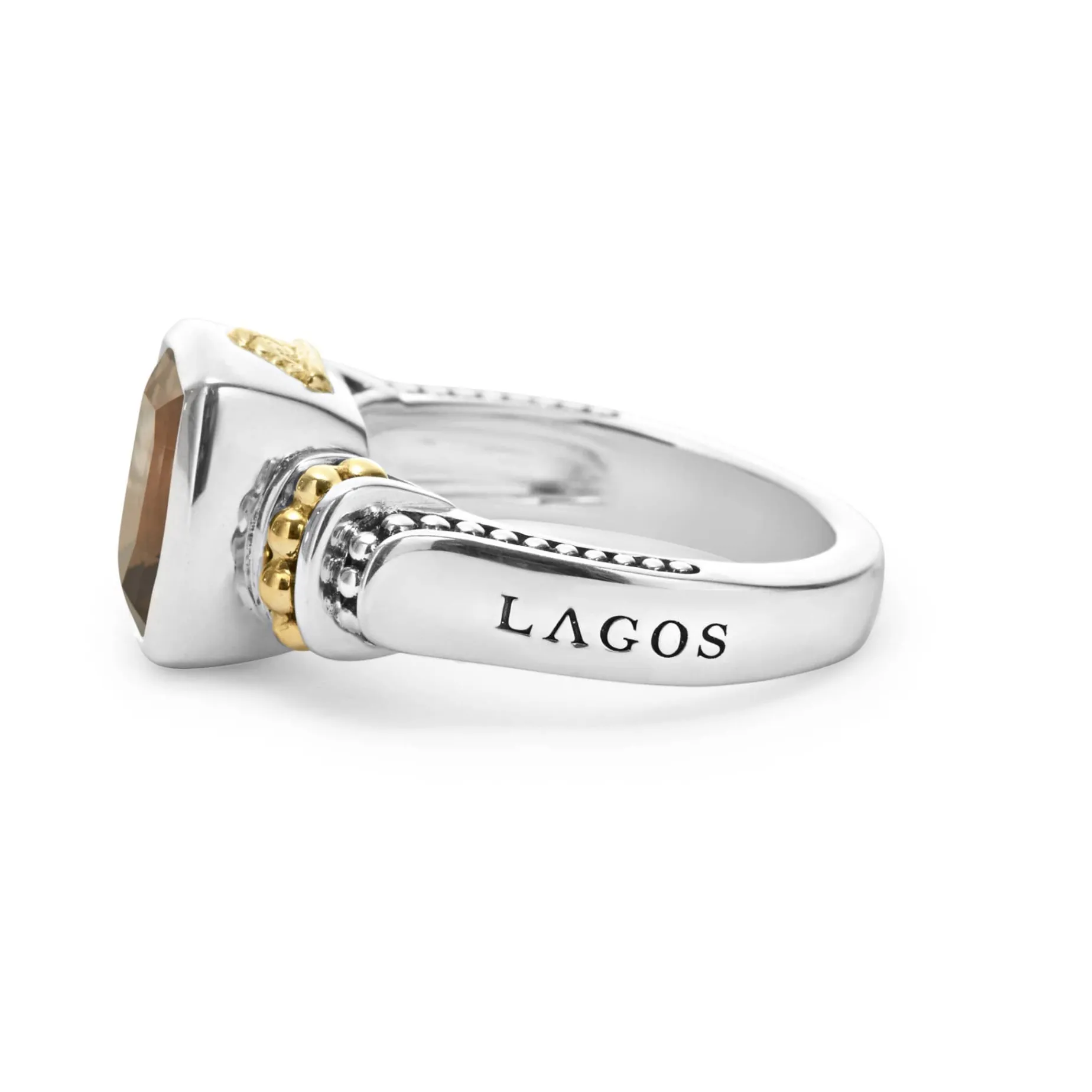 Smokey Quartz Bezel-Set Gemstone Ring With 18K Caviar Beading On A Sterling Silver Band.