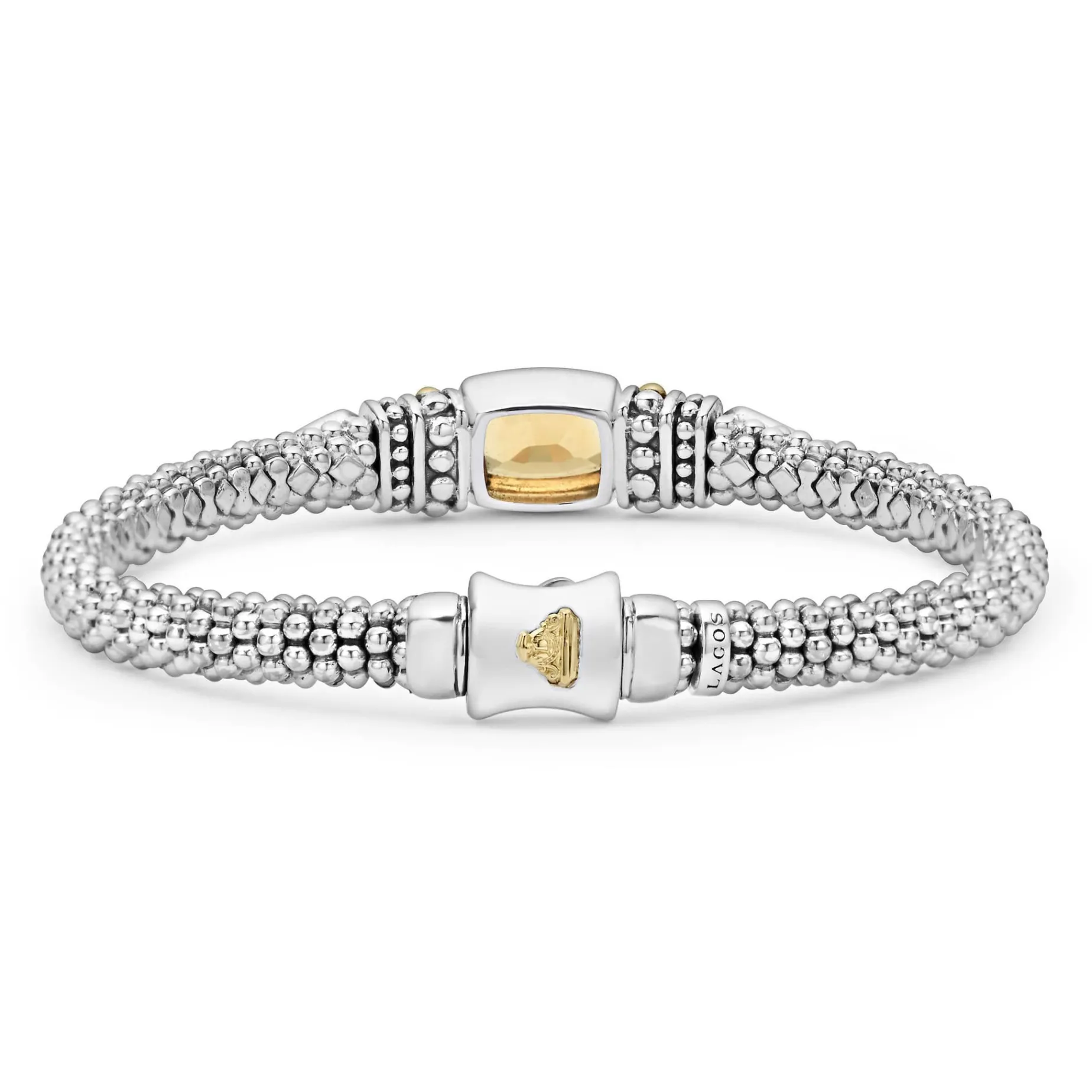 Citrine Bezel-Set Gemstone And Sterling Silver Caviar Beading With 18K Gold Detailing Forms This Bracelet.