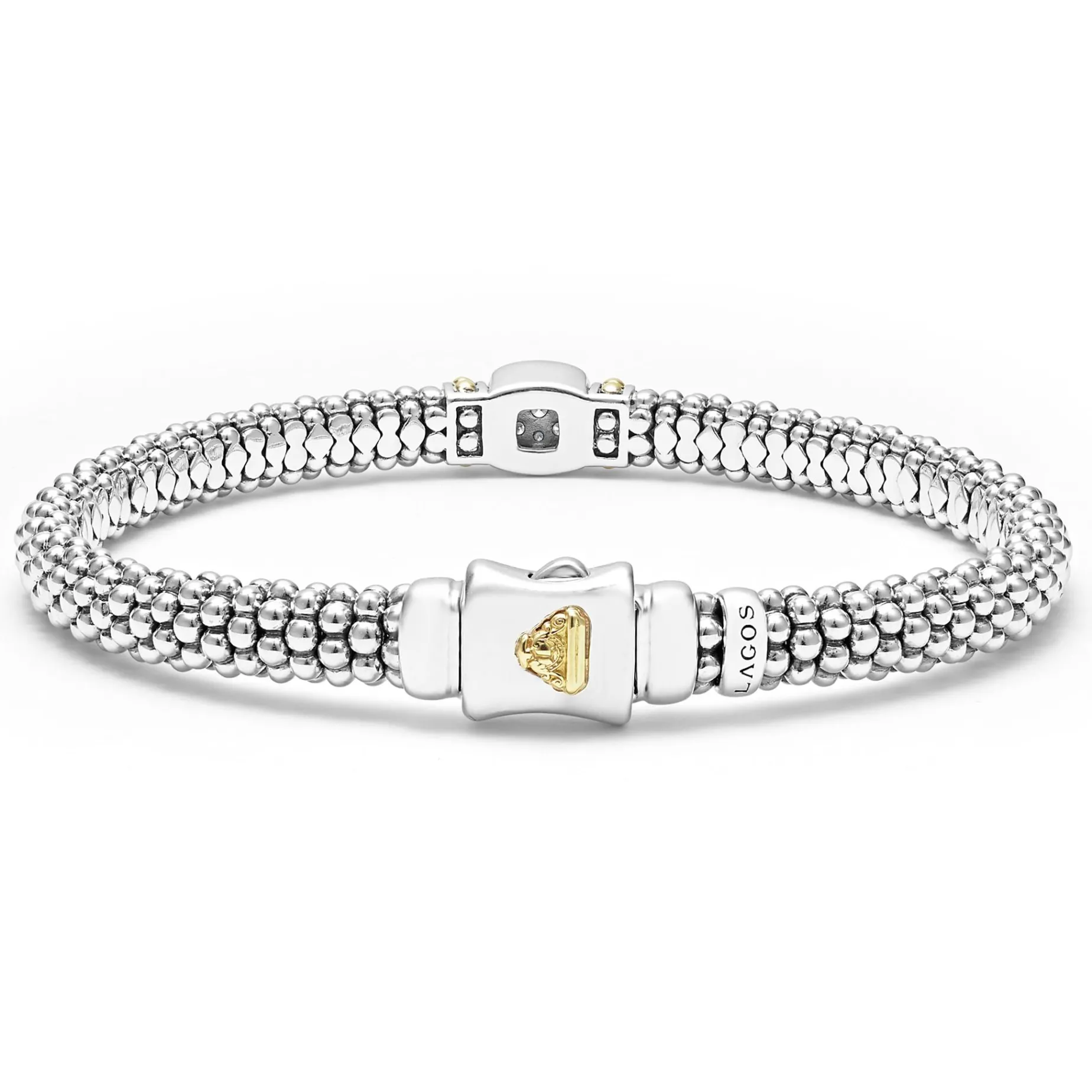 Pave Diamonds And Sterling Silver Caviar Beading With 18K Gold Detailing Forms This Rope Bracelet. Lagos Diamonds Are The Highest Quality Natural Stones.