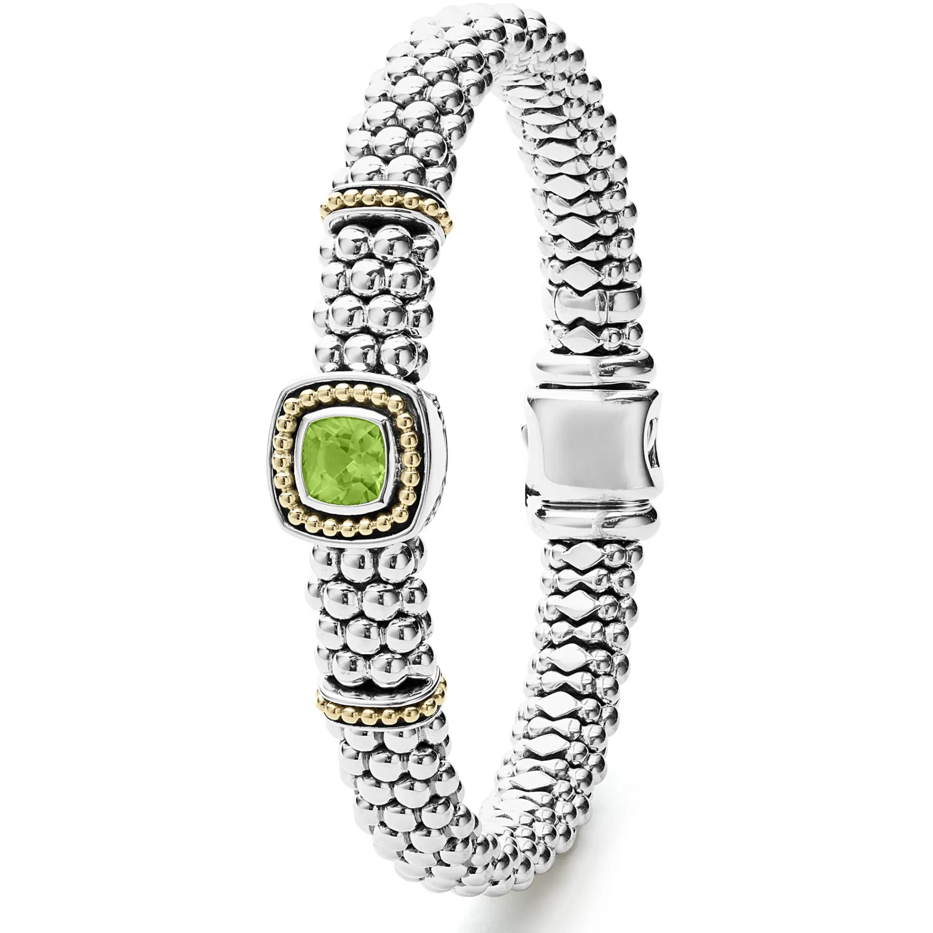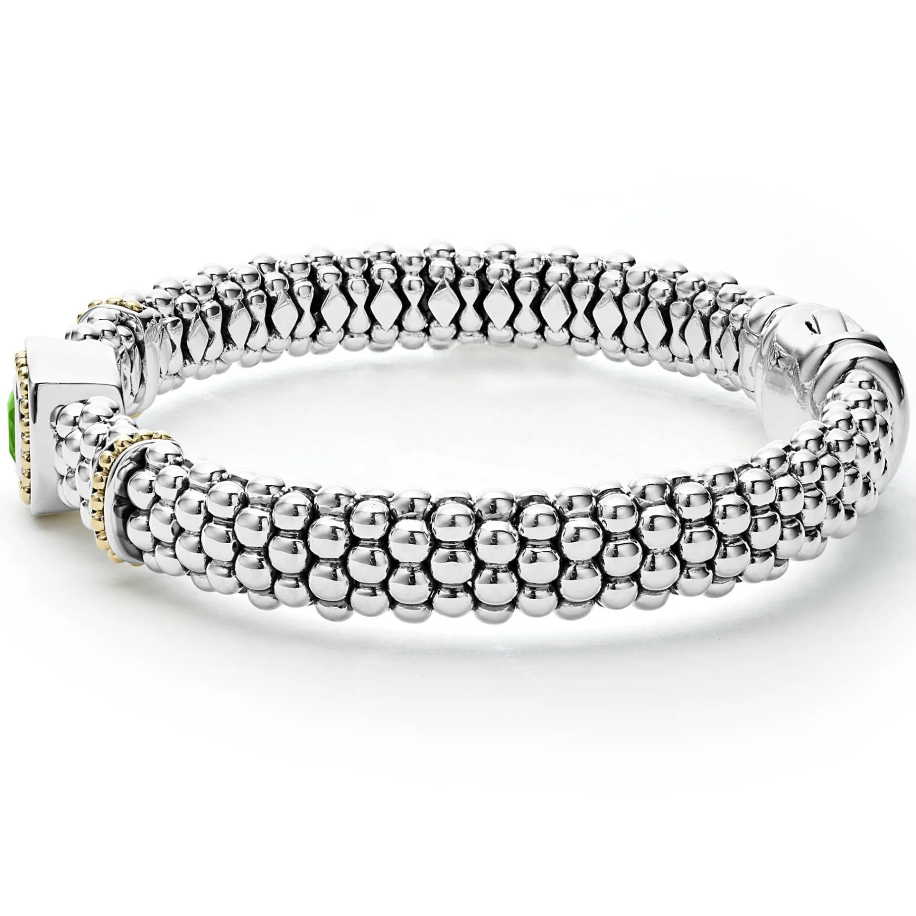 A Peridot Gemstone And Sterling Silver Caviar Beading With 18K Gold Detailing Forms This Bracelet.