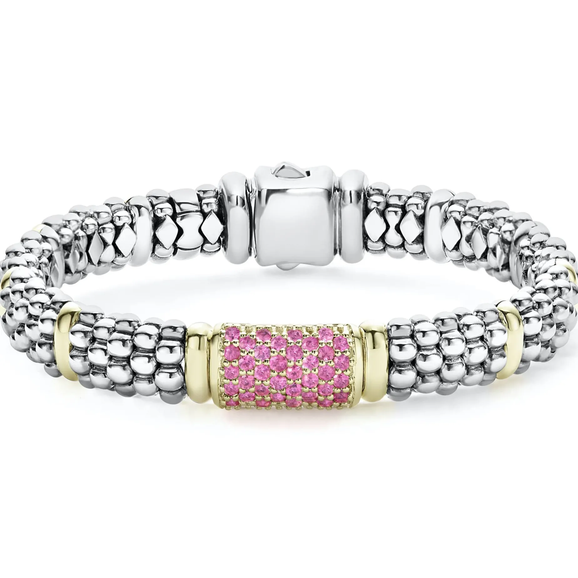 A Lagos Exclusive. Ten 18K Gold Stations Accent This Sterling Silver Caviar Beaded Bracelet With Precious Pink Sapphire Gemstones Set In 18K Gold.