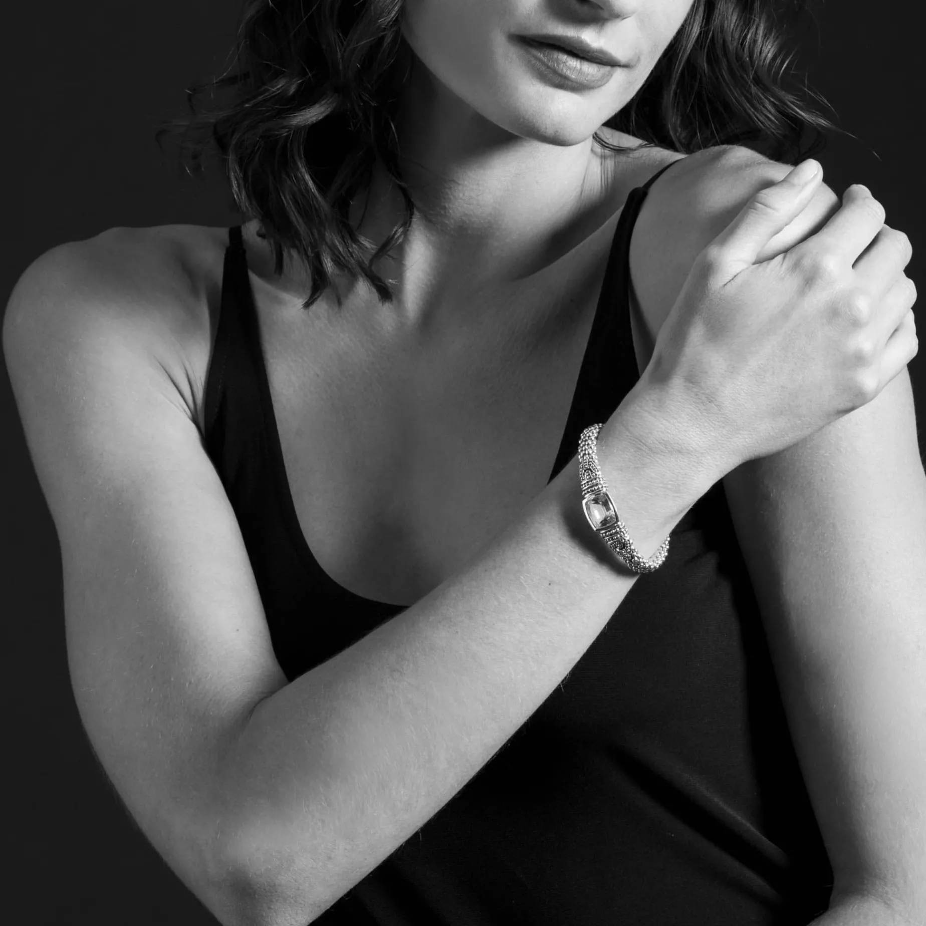 Smokey Quartz Bezel-Set Gemstone And Sterling Silver Caviar Beading With 18K Gold Detailing Forms This Bracelet.