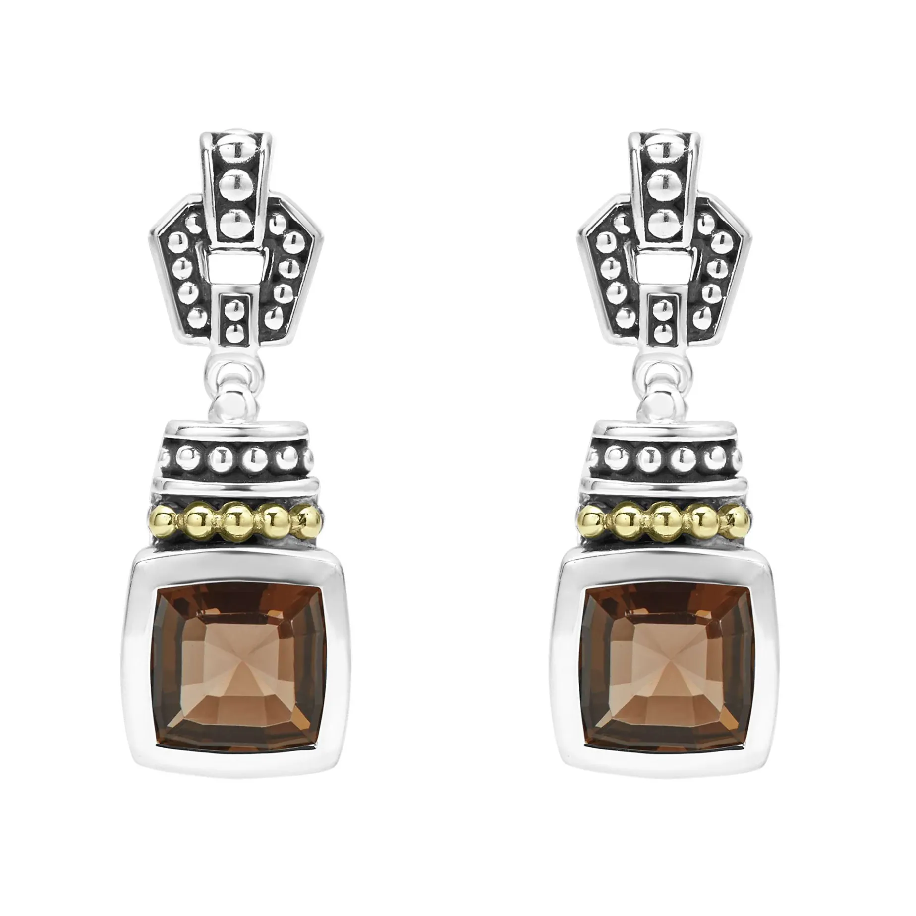 Smokey Quartz Gemstone Drop Earrings With 18K Gold And Sterling Silver Caviar Accents. Finished With 14K Gold Posts.