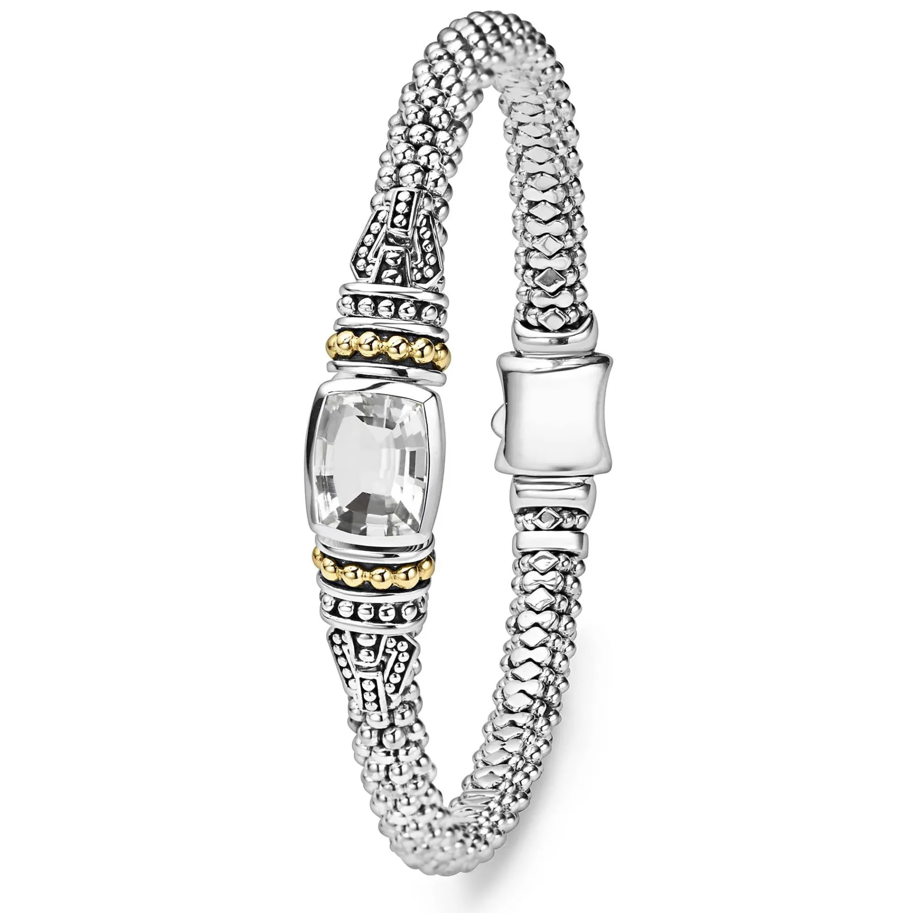 White Topaz Bezel-Set Gemstone And Sterling Silver Caviar Beading With 18K Gold Detailing Forms This Bracelet.