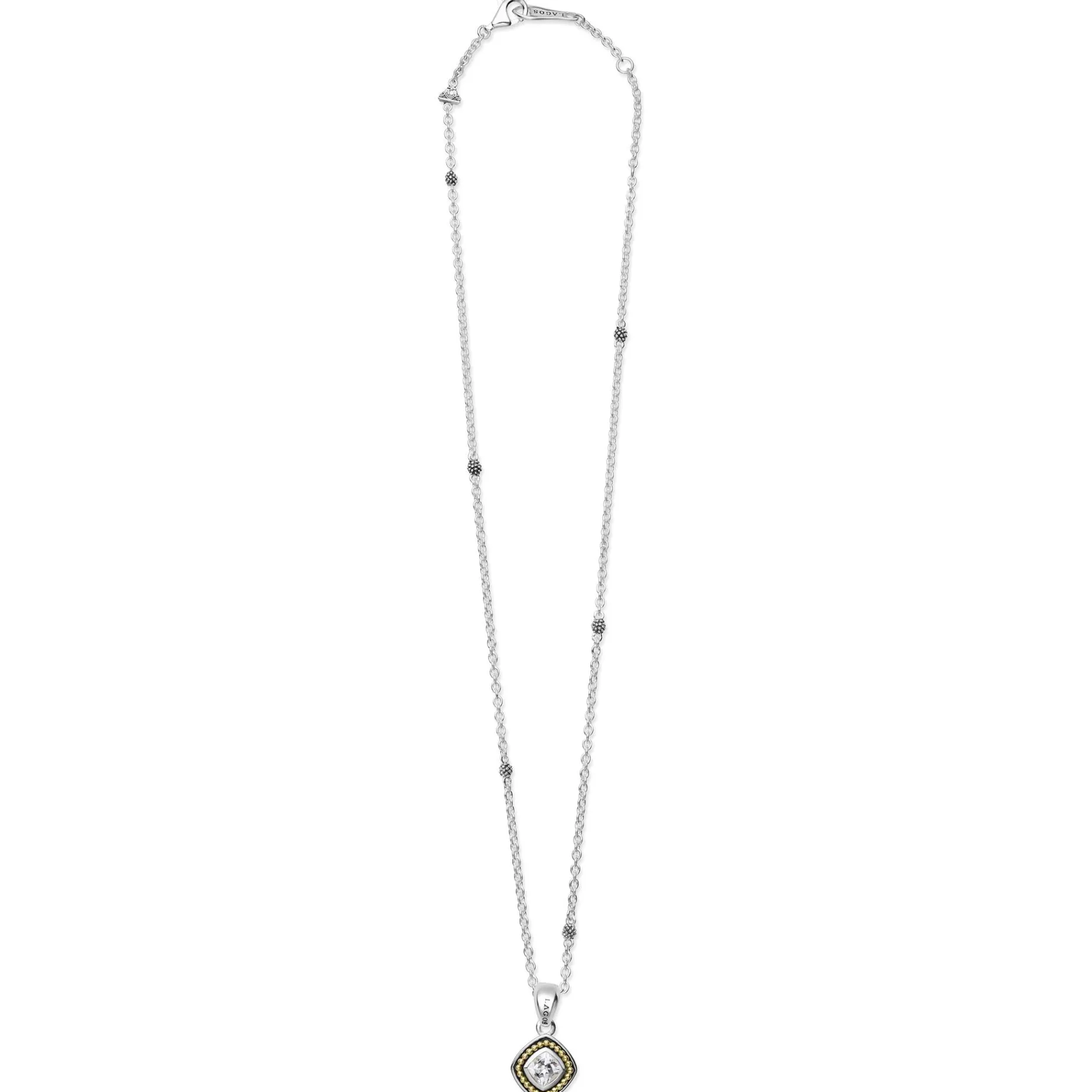 A White Topaz Gemstone Surrounded By Sterling Silver And 18K Gold Caviar Beading Form This Pendant. Finished On A Versatile Link Necklace.