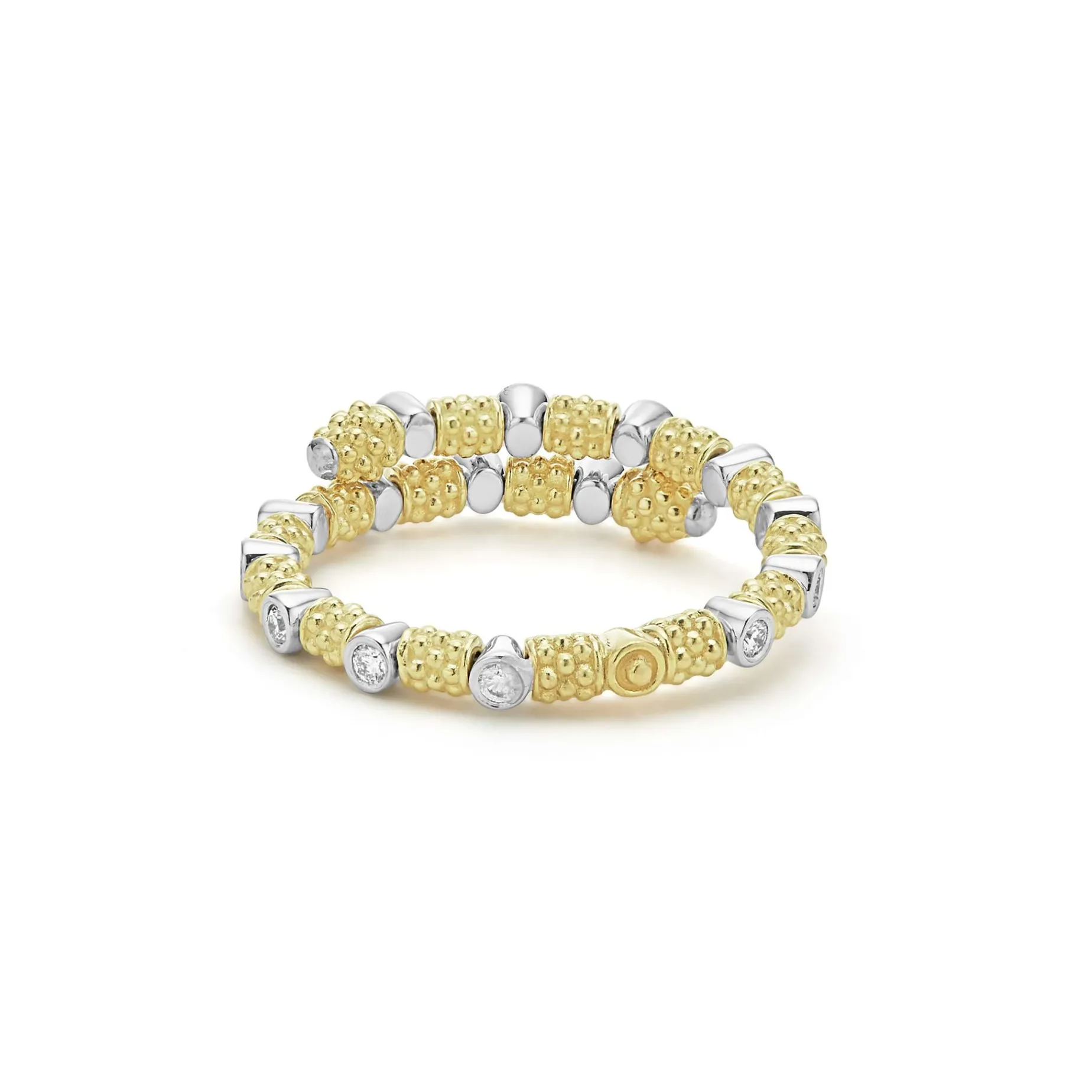 Diamonds Surrounded By 18K Gold Superfine Caviar Beading Form This Delicate Wrap Ring. Lagos Diamonds Are The Highest Quality Natural Stones.