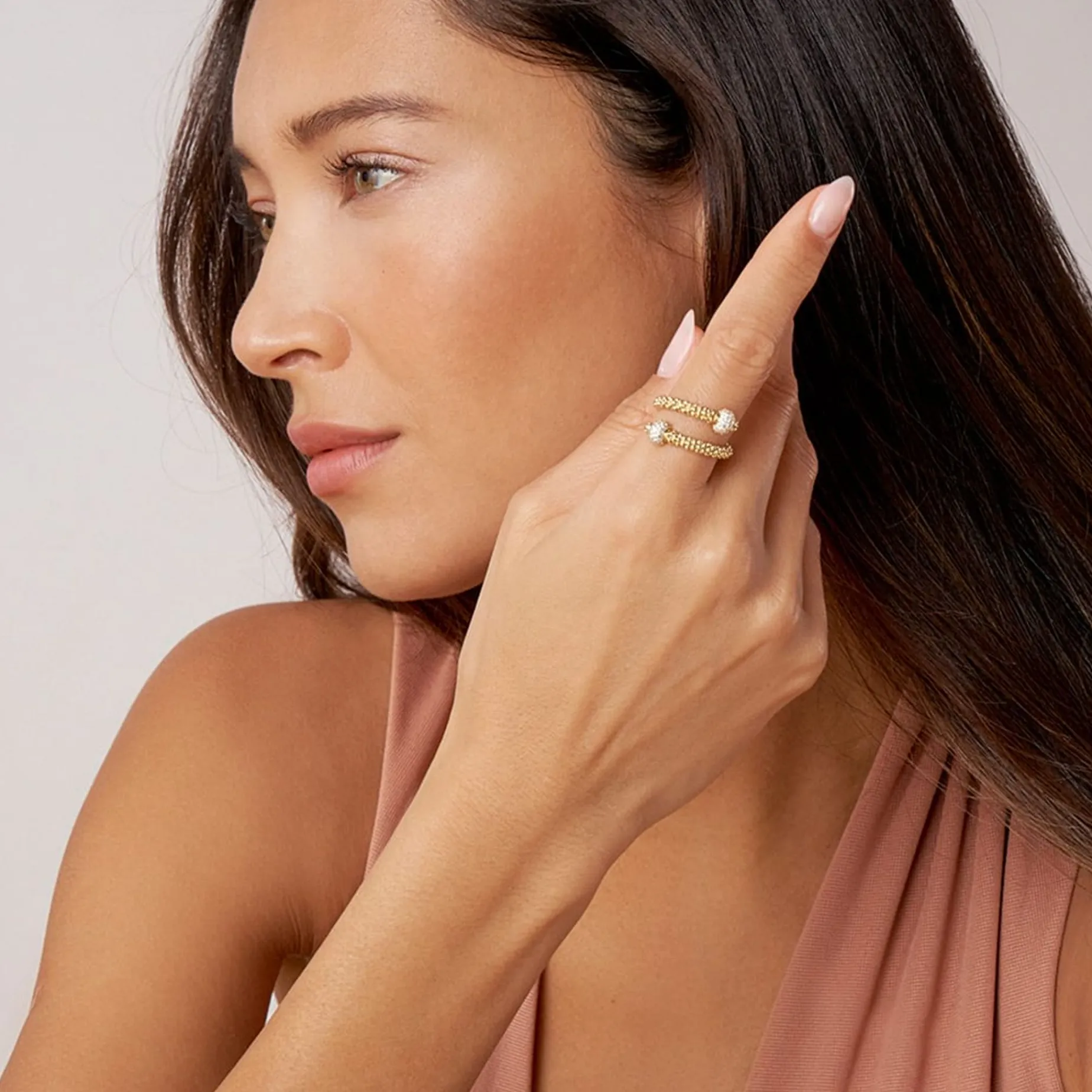 Diamonds Surrounded By 18K Gold Form This Wrap Ring Finished On A Band Of Caviar Beading. Lagos Diamonds Are The Highest Quality Natural Stones.