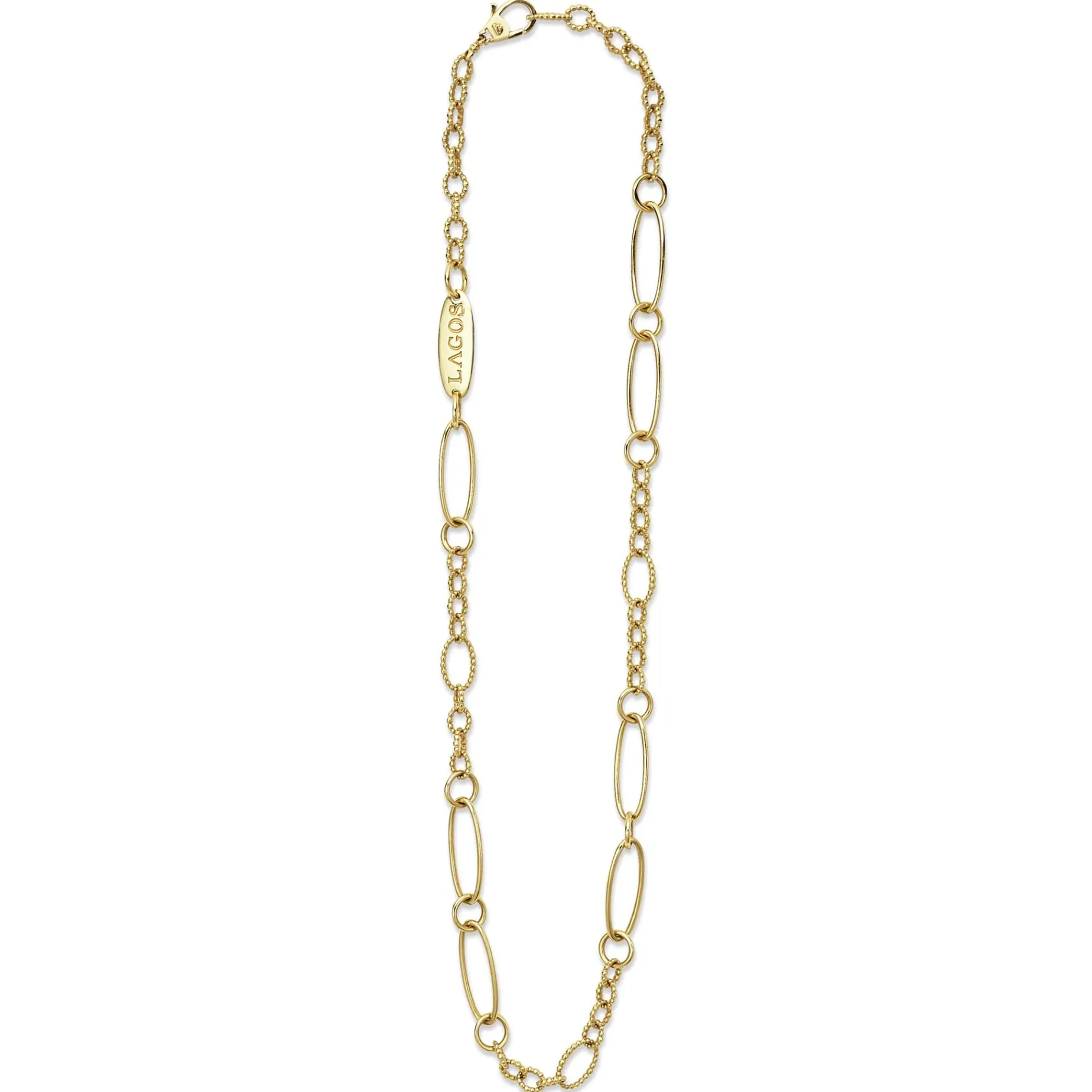 18K Gold Variations Of Caviar Beading & Fluting Elements Form This Timeless Link Necklace.