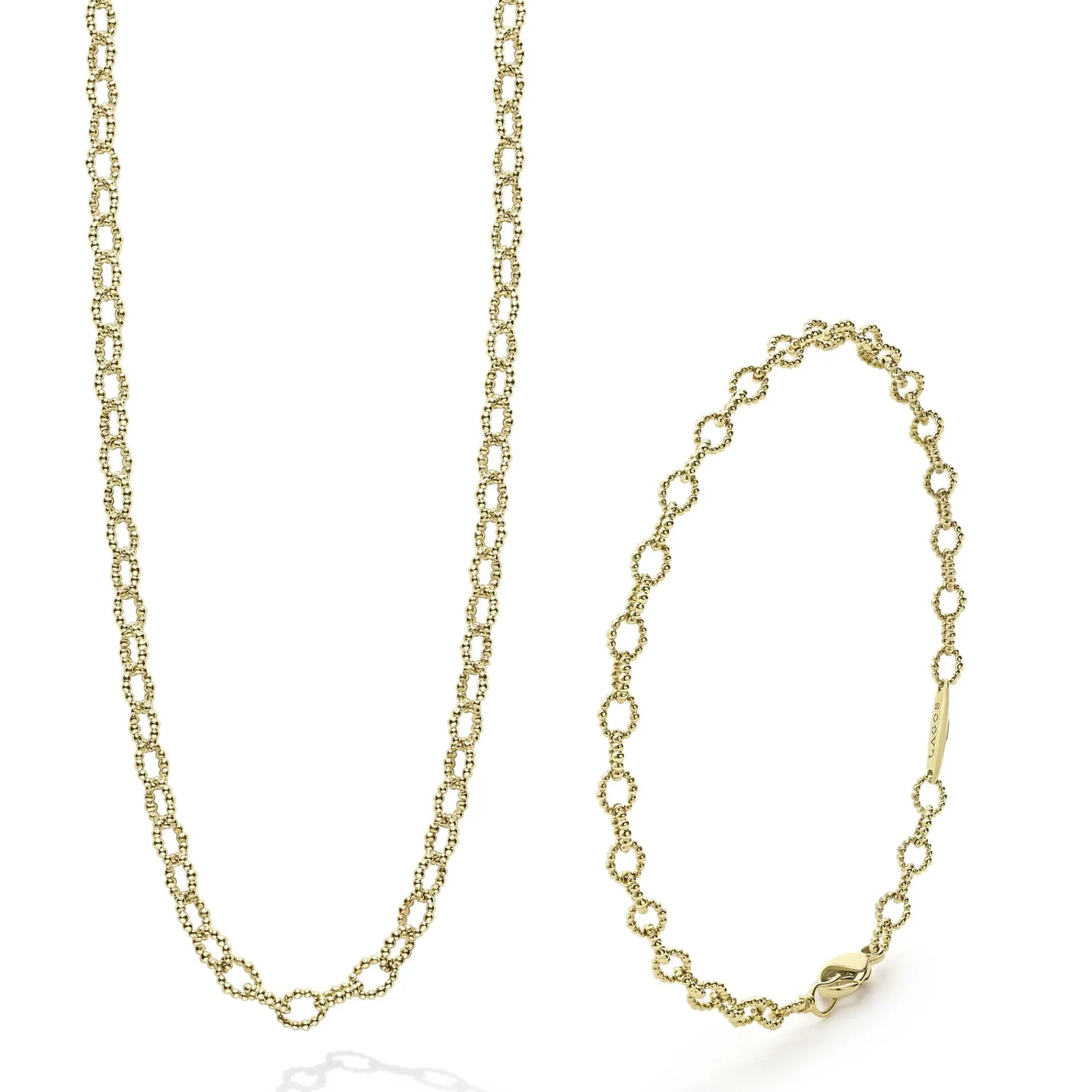 A Lagos Exclusive. Set Of Two Signature Caviar 18K Gold Petite Link Pieces That Can Be Paired Perfectly Together Or Worn On Their Own. Set Includes Size Medium.