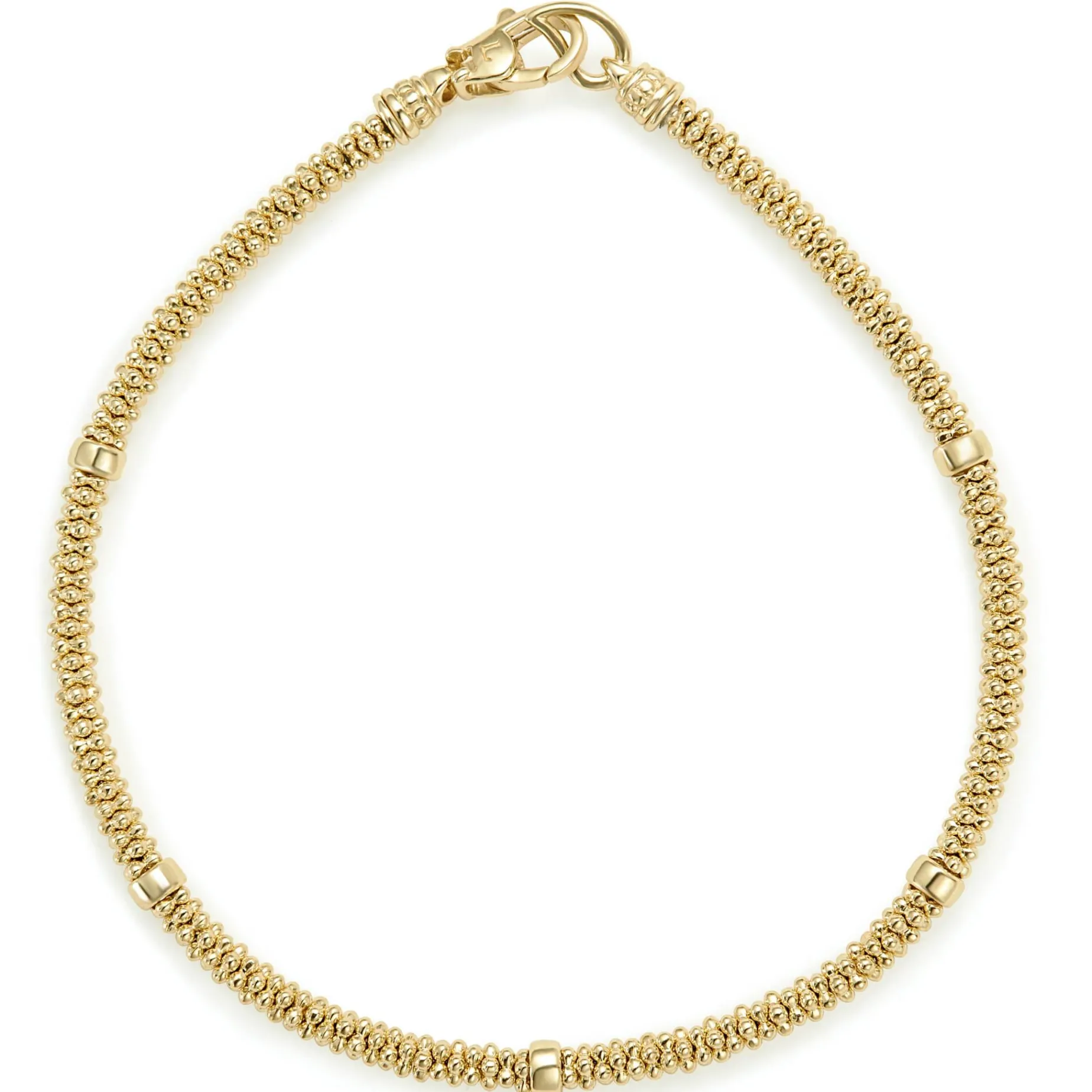 An 18K Gold Caviar Beaded Bracelet With Five Smooth Stations.