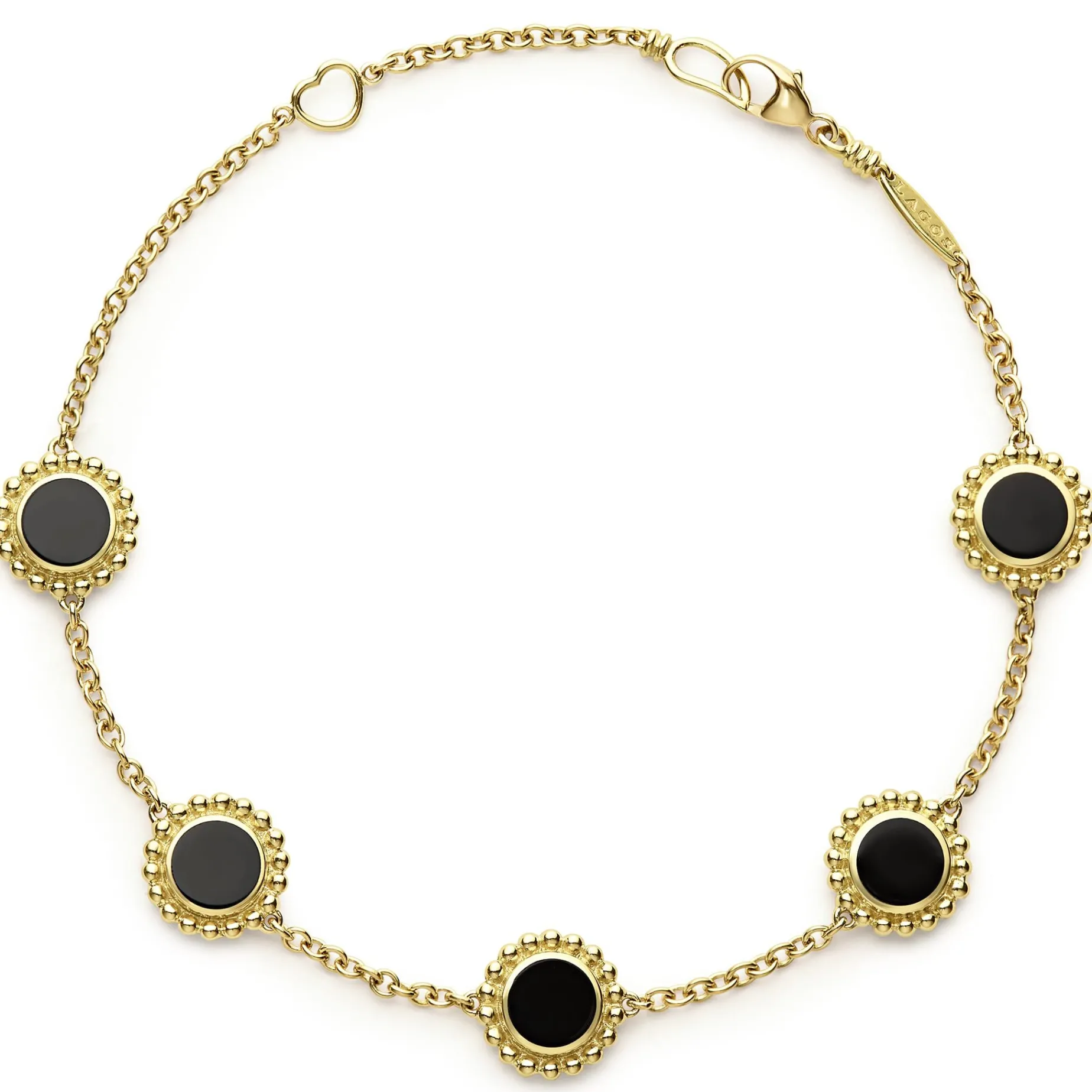 An 18K Gold Bracelet Including Five Onyx Inlay Stations With Caviar Beaded Details.