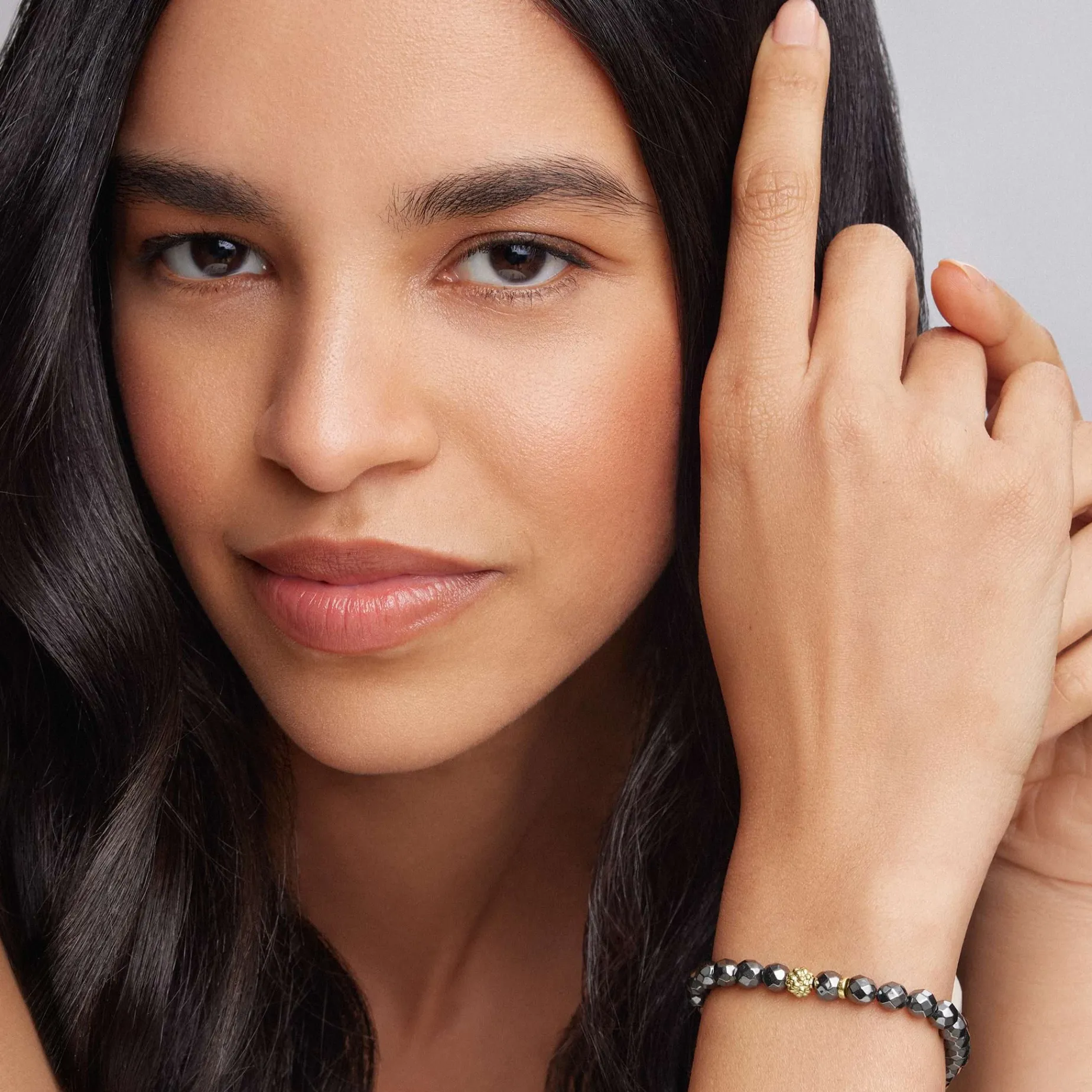 Hematite Gemstone Bracelet With An 18K Gold Caviar Beaded Station That Is Ideal To Style With Various Bracelets For A Unique Look.