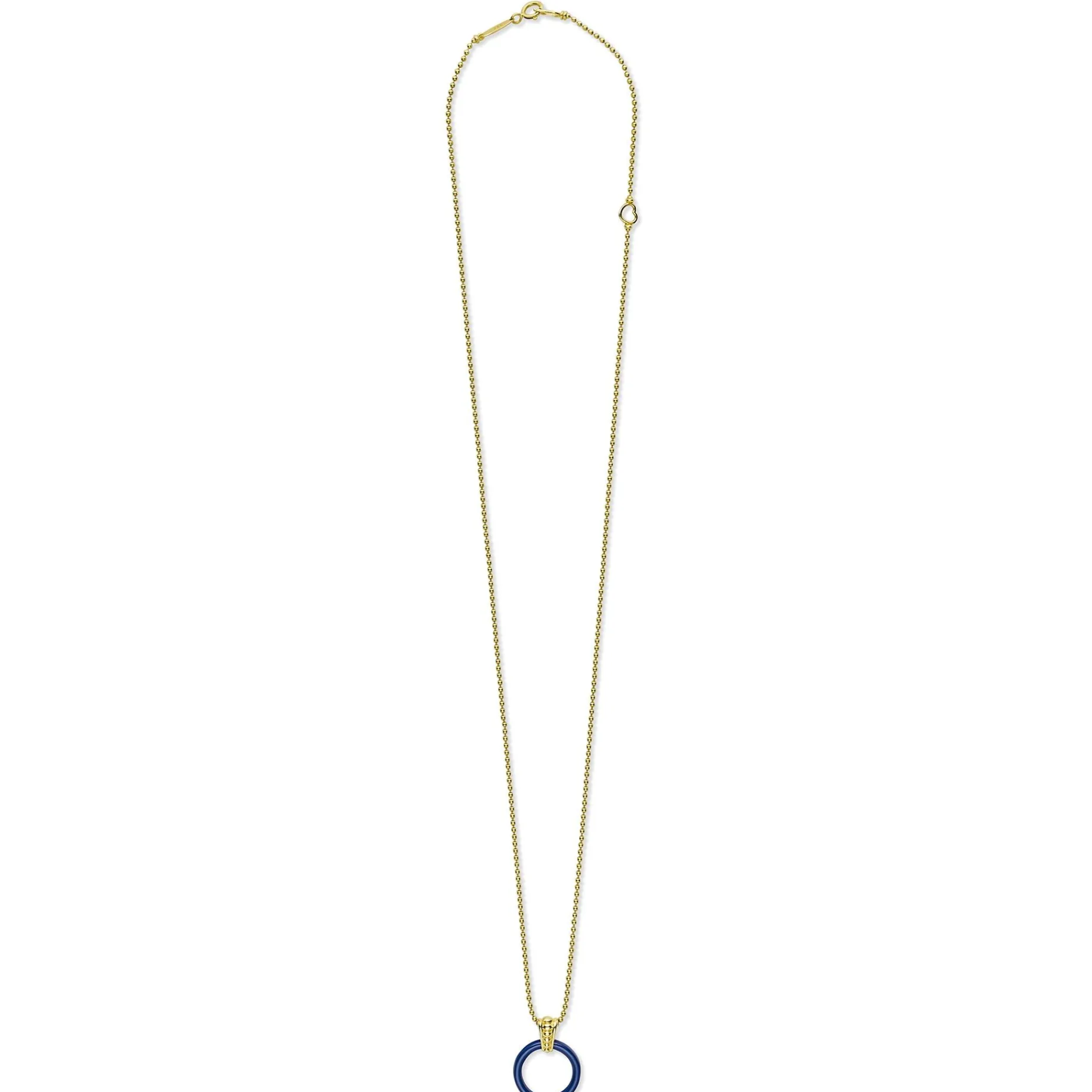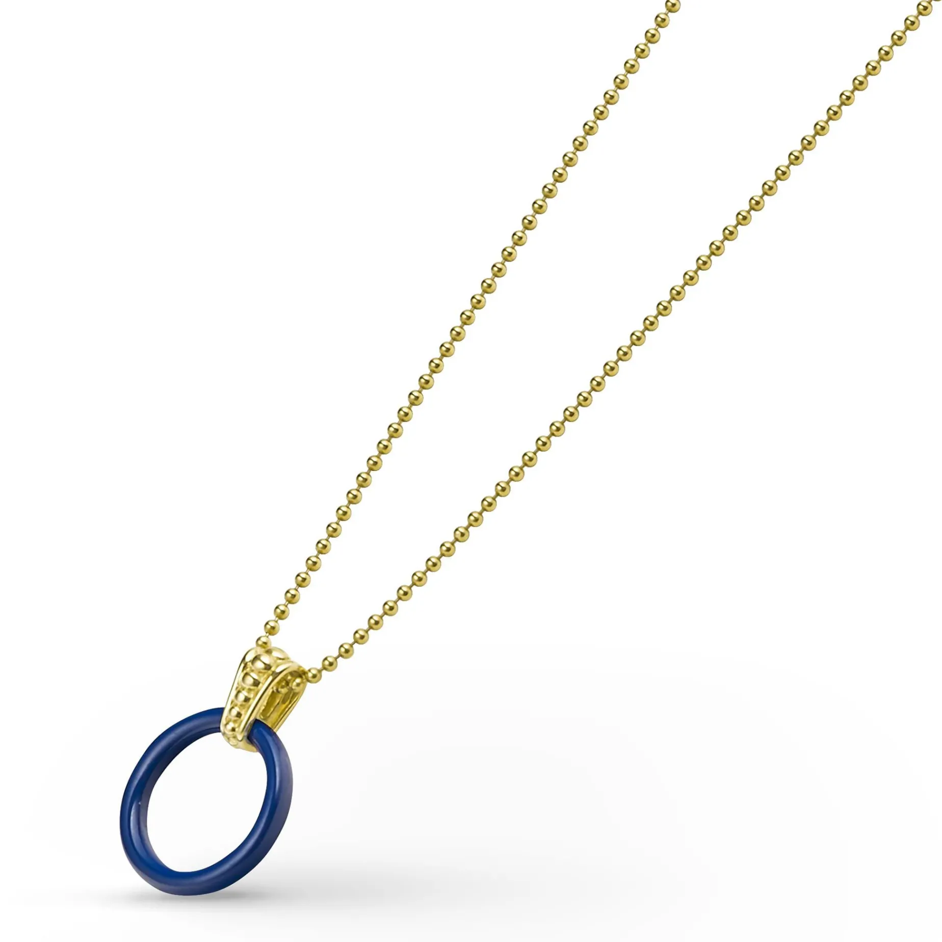 An Ultramarine Ceramic Circle With An 18K Gold Caviar Beaded Accent Forms This Pendant On An 18K Gold Ball Chain Necklace.