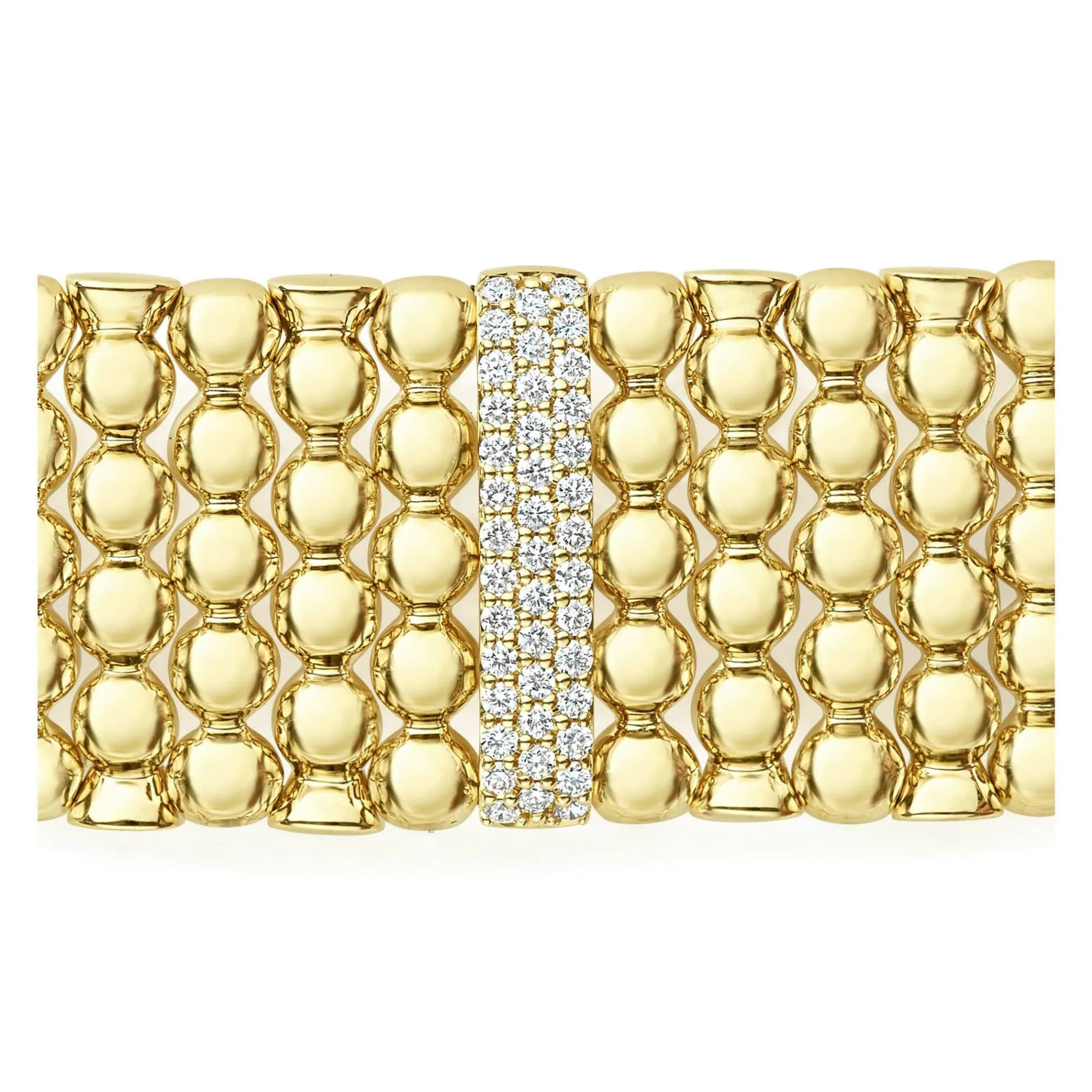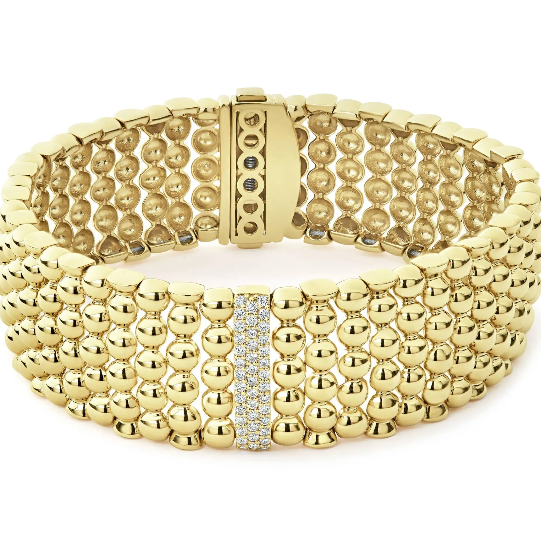 A Single Diamond Station Highlighted By Dramatic 18K Gold Caviar Beading Form This Bracelet. Lagos Diamonds Are The Highest Quality Natural Stones.